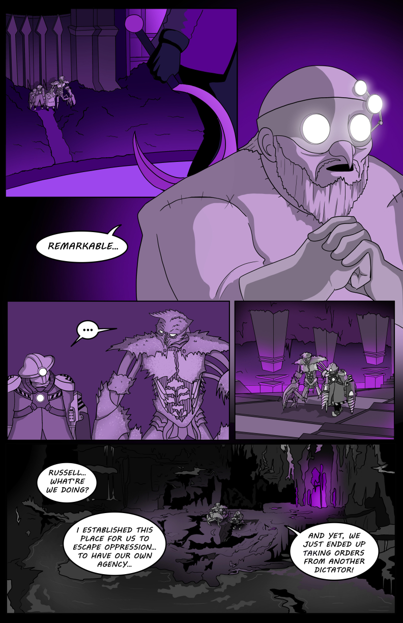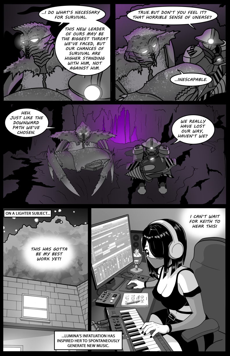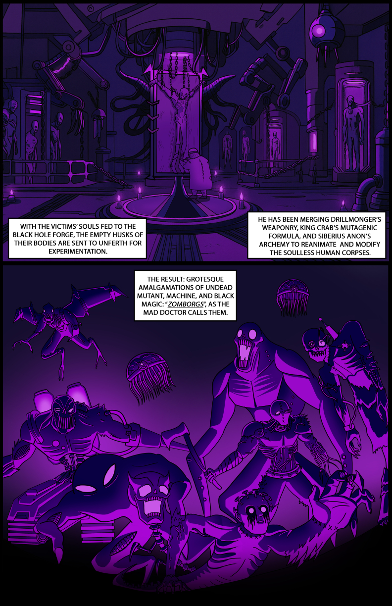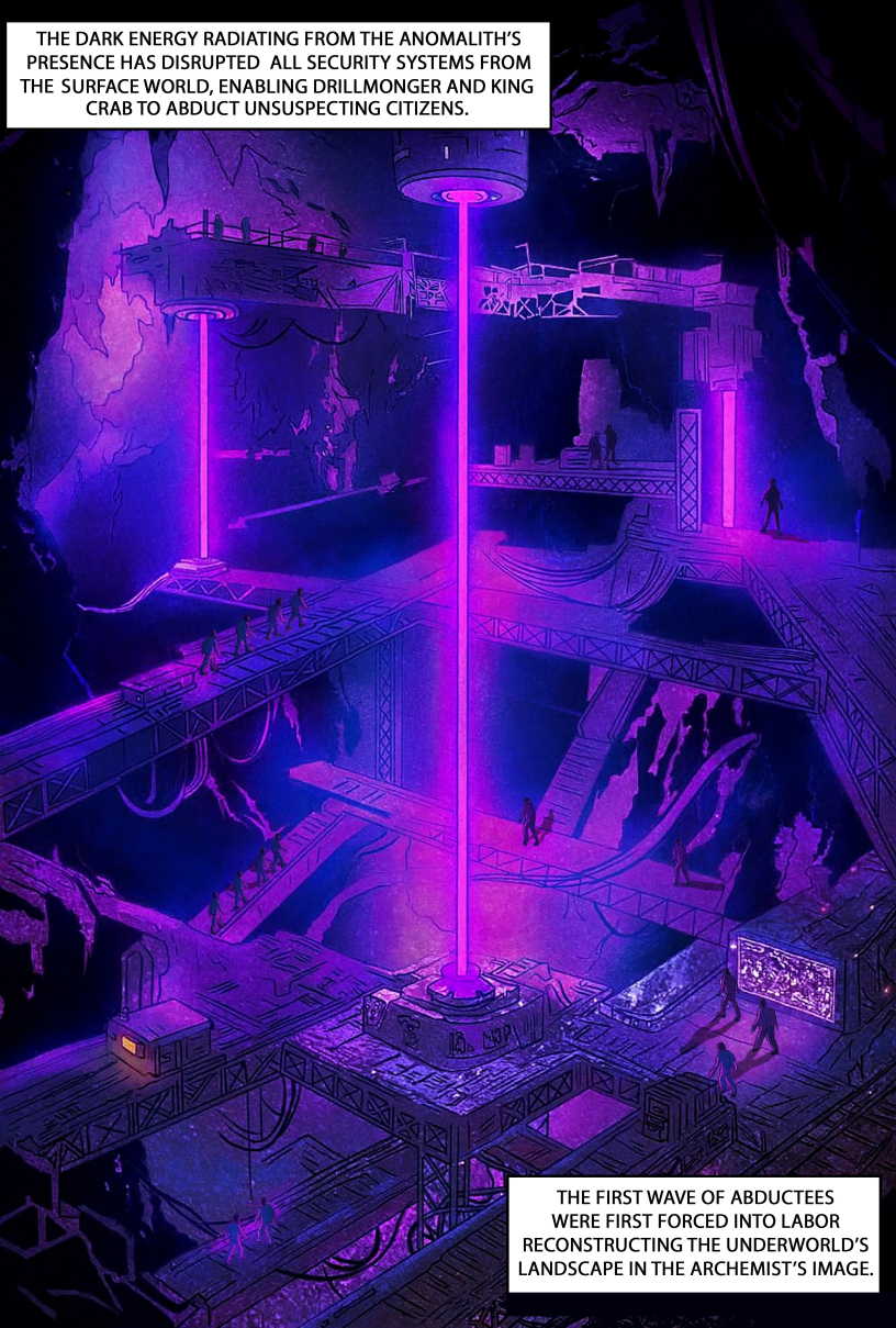 Siberius Anon has claimed both the Underworld and the title of Archemist. The criminal base has been transformed into a nightmarish slave camp for turning the Helios superconductor into a soul-eating black hole machine. This far cry from the vision Drillmonger and King Crab once had leaves them questioning their choices. Meanwhile, Lumina gears up for confessing to Keith, presumably when they gather to properly celebrate Nicole being cancer-free. But along comes Mel to put Keith on a search and rescue mission for all the people who were abducted and forced into labor in the Underworld!