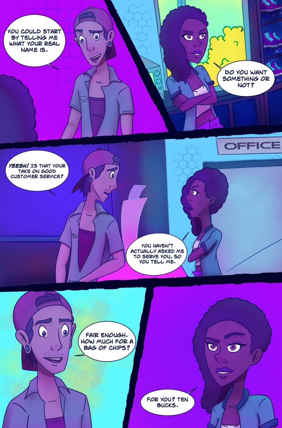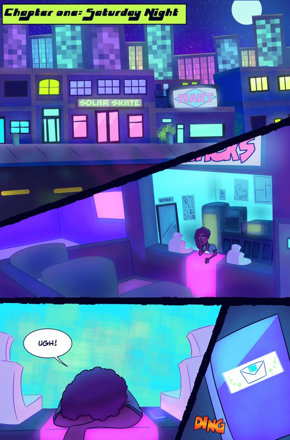Neon Girls: Chapter One: Pages 1-5 - Meet Jasmine. She's about to have an evening.