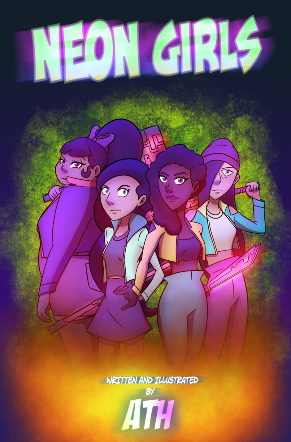 Neon Girls follows a group of mostly queer, mostly Latino high school seniors following a night of gang violence that turns the city upside down. When the cops don’t seem too pressed to take action, the girls realize it’s time for them to step up to the plate. With some recently acquired high-tech weapons, pairs of rollerblades, and no plan whatsoever, the Neon Girls are born… And they quickly learn how in over their heads they are.