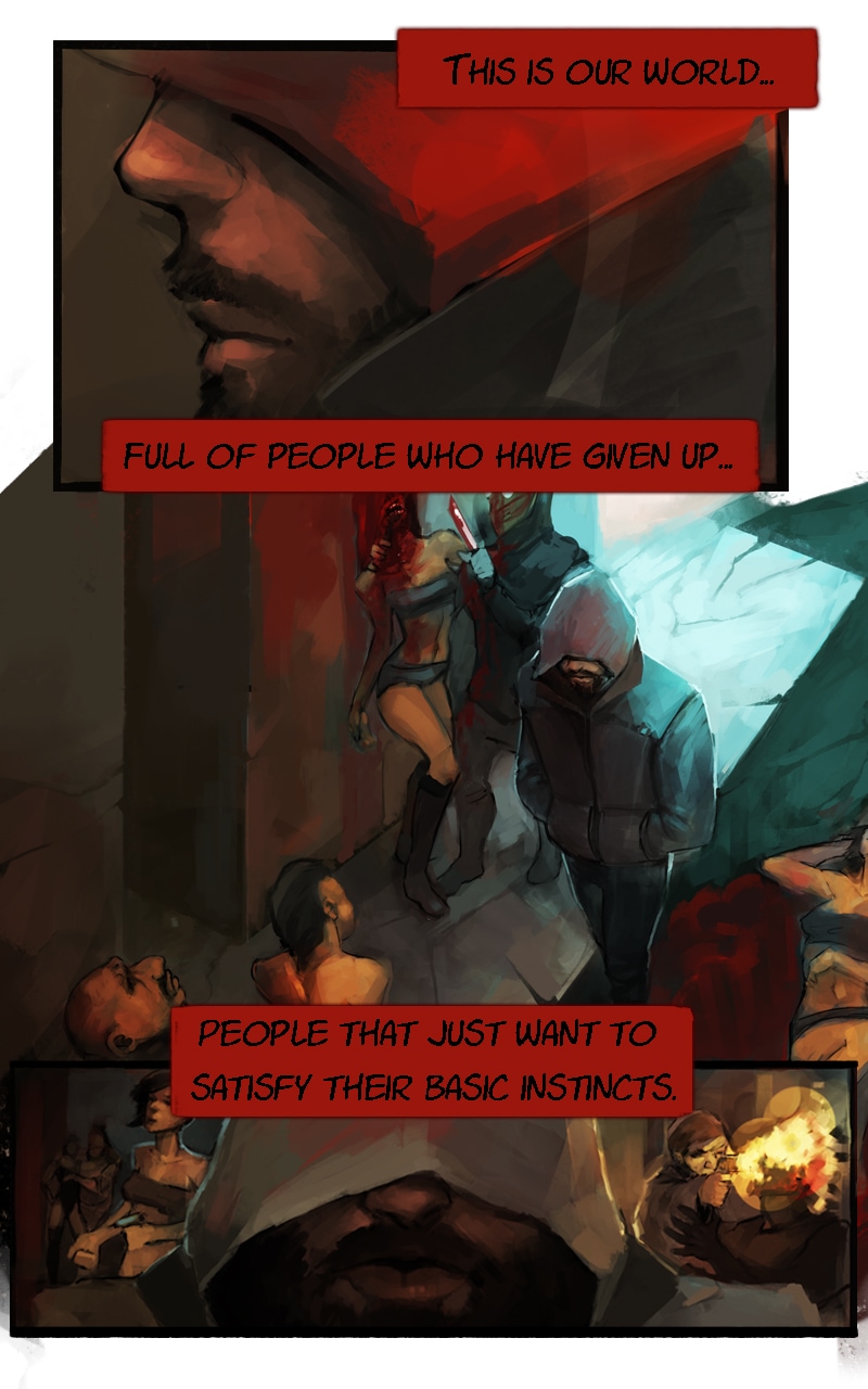 We advance, we learn, we change, and not always for the best. The world has changed to nothing more than a blood bath. Humanity has given way to its basic instincts, and all seems lost... Seems.