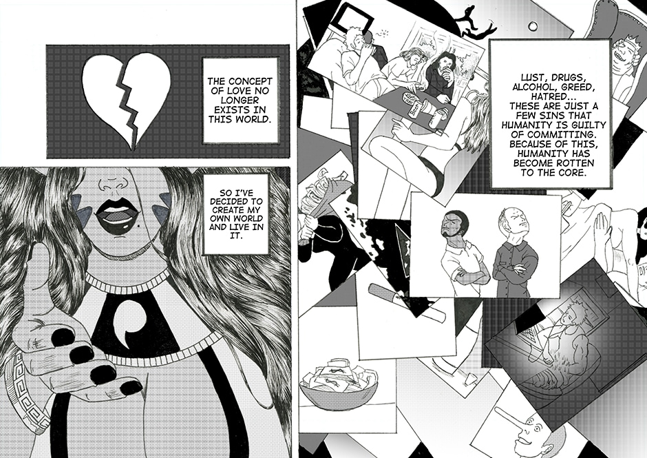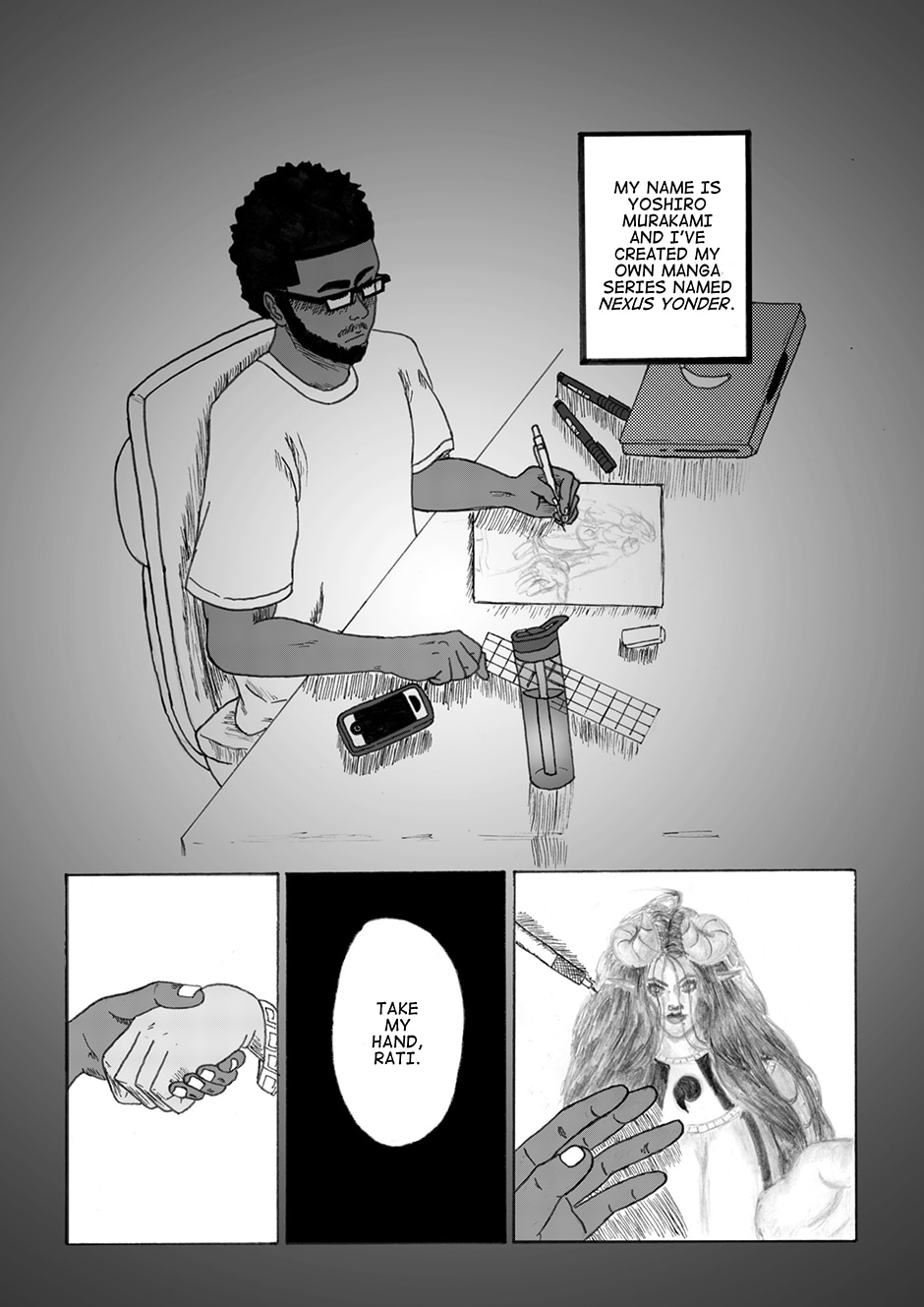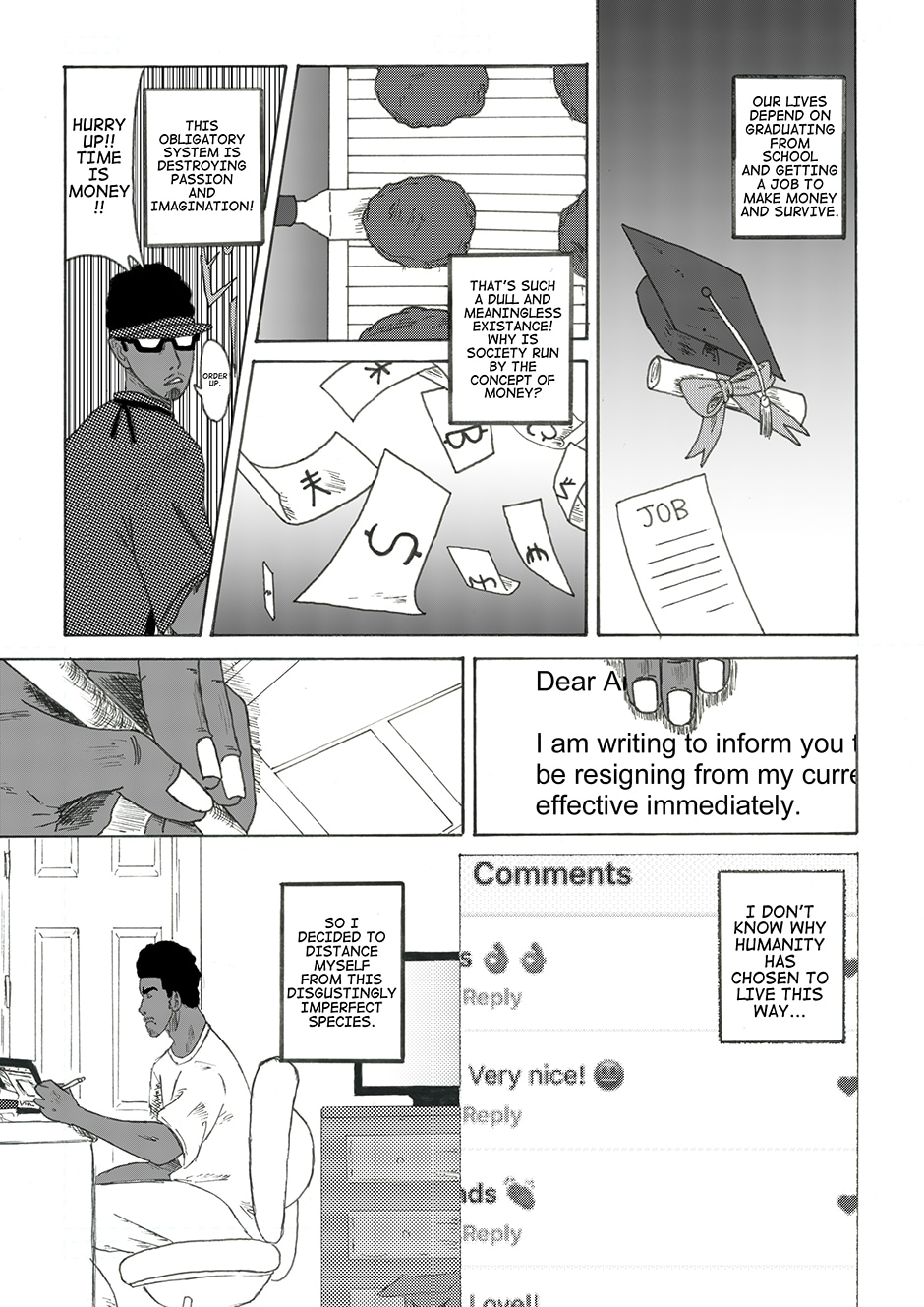 *Like a Japanese manga, his comic is read right to left