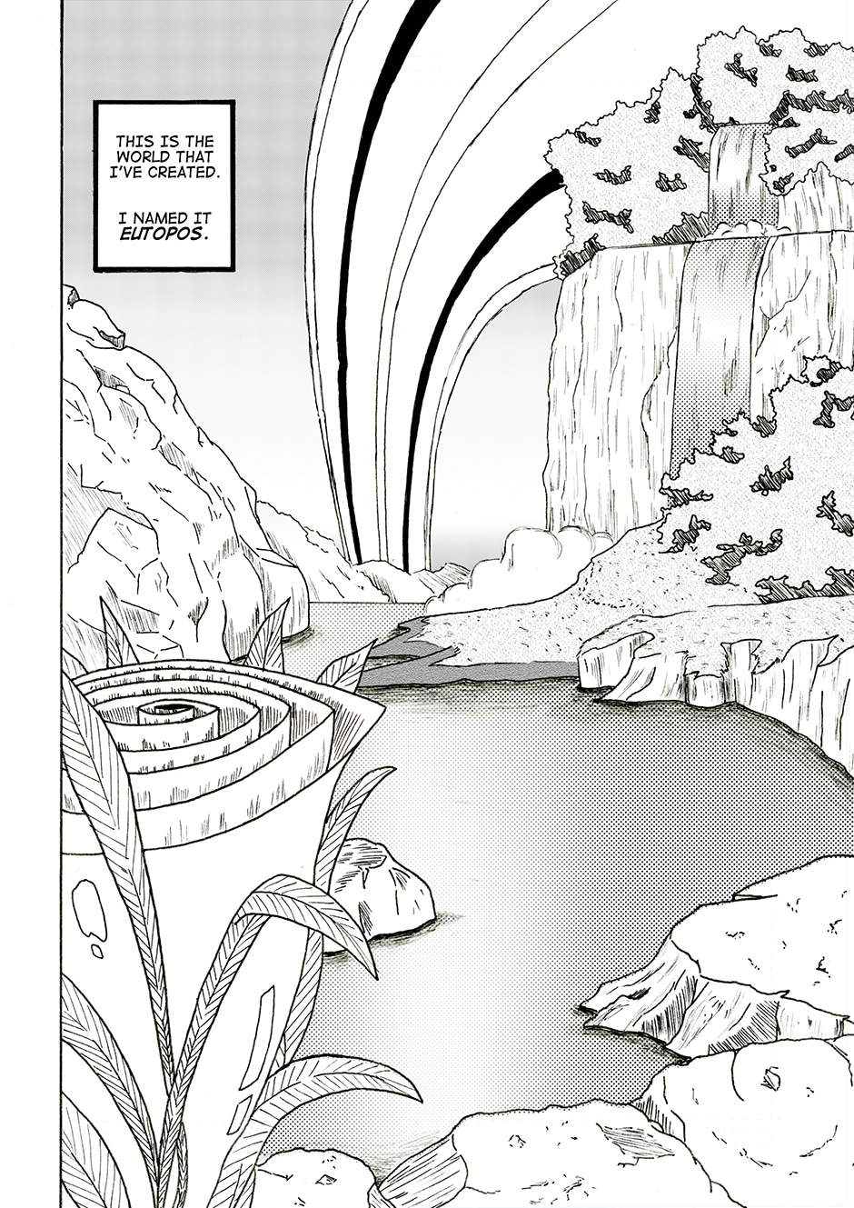 In response to his frustration, a deity appears before him claiming that, like an author of a novel, he created this world to do his bidding and purposefully made human society rotten and imperfect to influence Yoshiro's desires for a utopia.