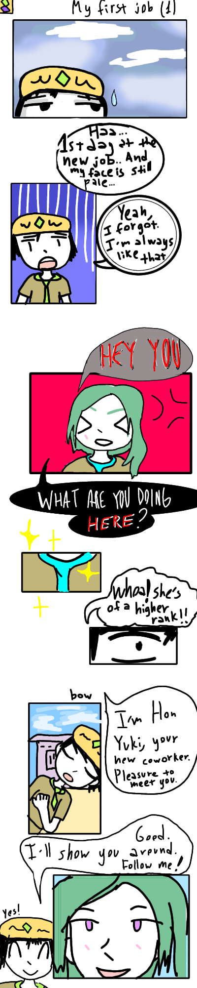 Hon faced his new colleague! Scary!