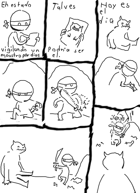 sigue la divertida historia de este ninja mal dibujado que se enfrenta a los moustros para salvar a su padre.