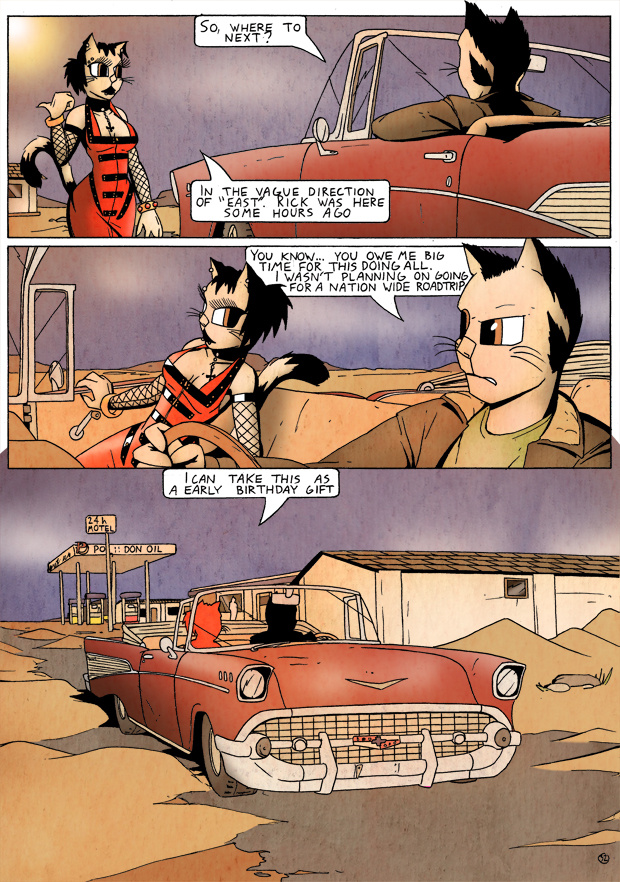 It's a one, long roadtrip. ninthlife.thecomicseries.com