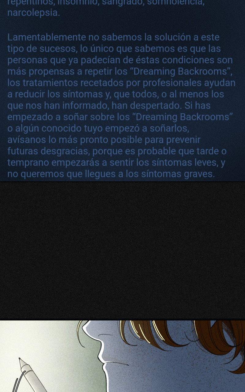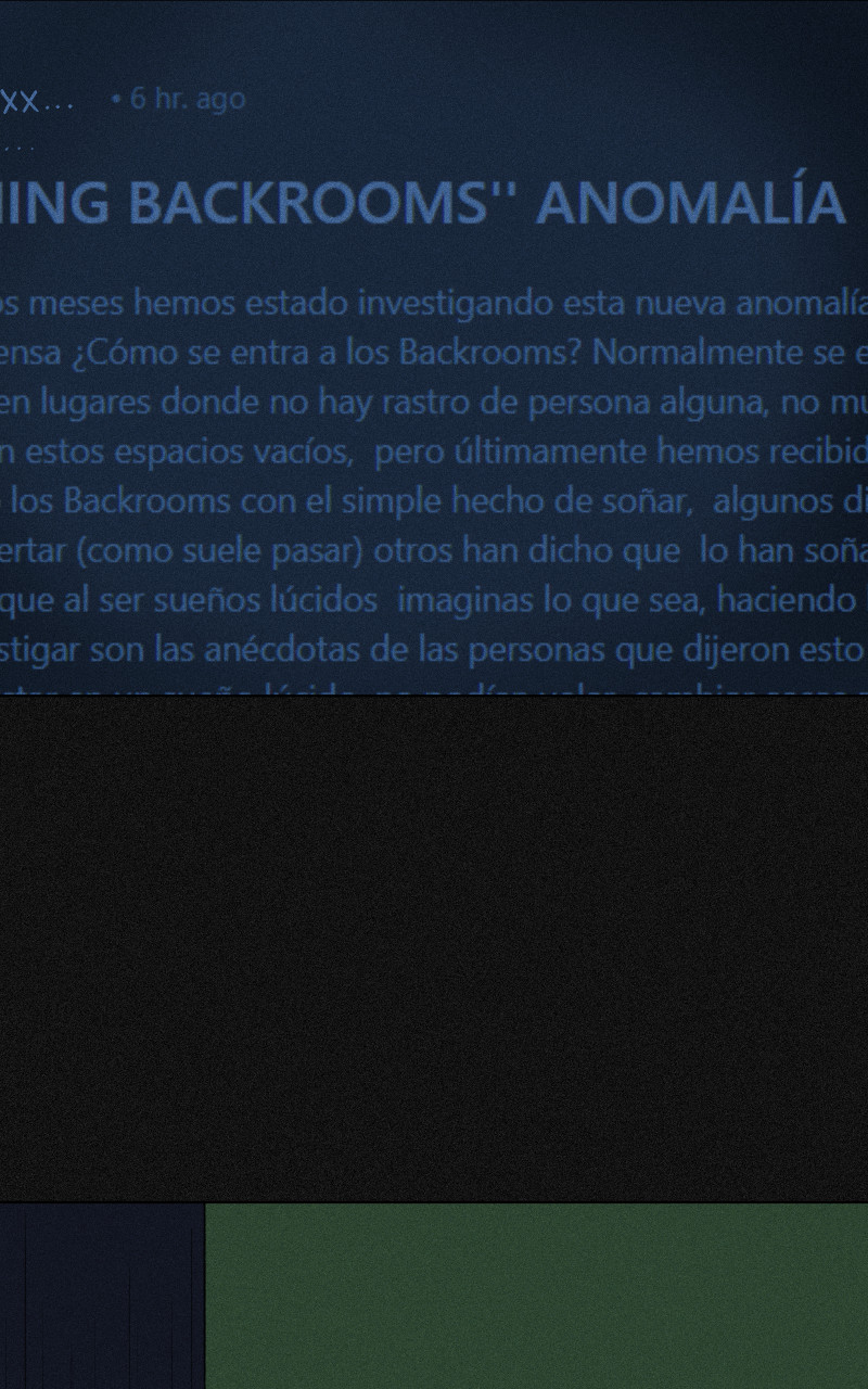 Zoé Navarro padece de insomnio, pero un pequeño estrés que sintió una noche, provocó que se durmiera al instante en su cama, pero al despertar, ésta se encontraba atrapada en una parálisis de sueño, cuando finalmente ''despierta'', se da cuenta que en realidad quedó atrapada en los Backrooms, sin saber por cuánto tiempo permanecerá ahí. <Patreon.com/nethi>