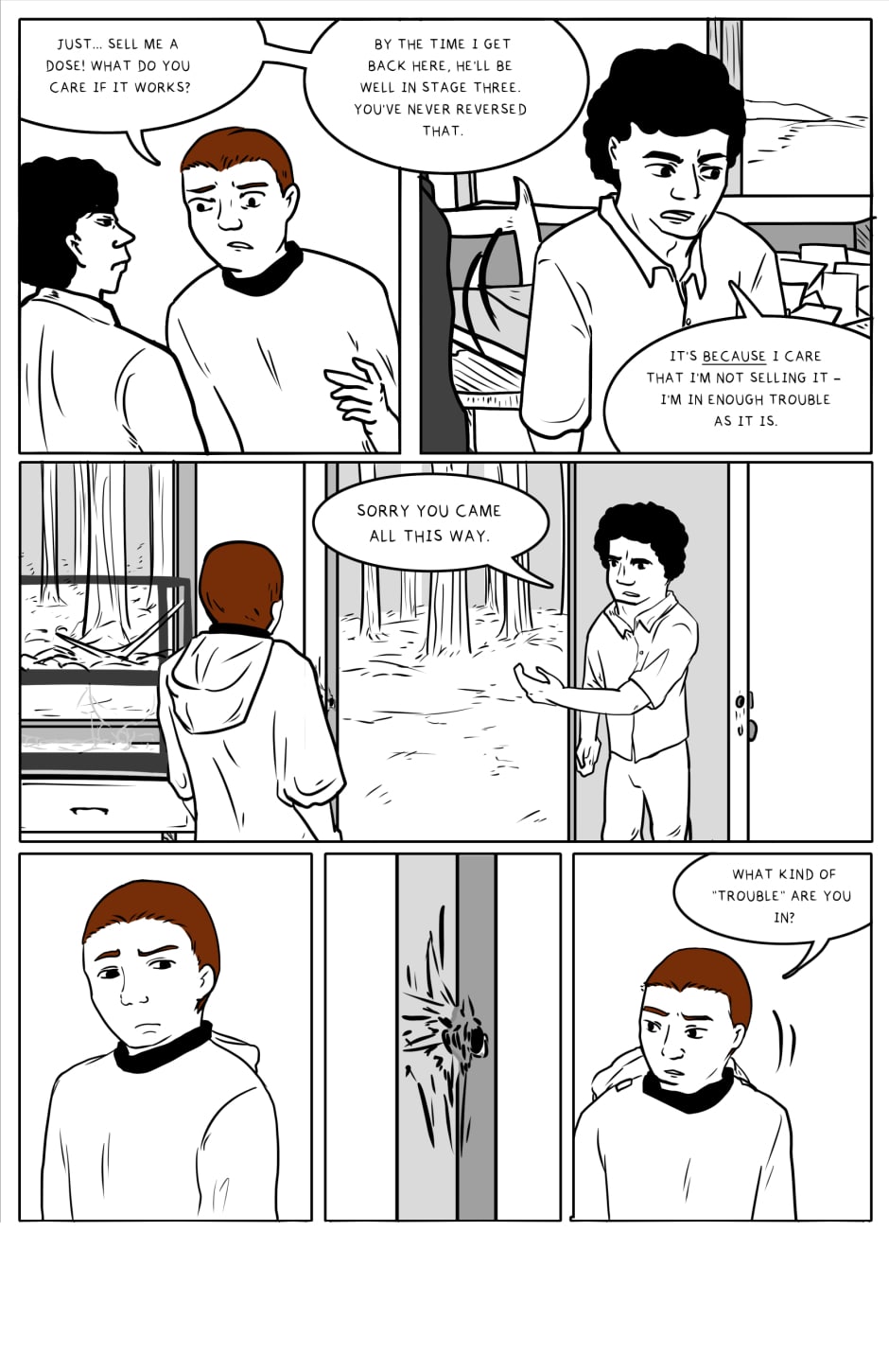 Hi all! Acclimating (slowly) to the idea of uploading "episodes" over single comic pages. It's amazing how fast pages go by in the vertical scroll format (4/29: Okay. Fixed it. I think). And I flat out don't get page thumbnails yet, so I'm using the 300x300 image I have. Thanks for your patience, and for reading.