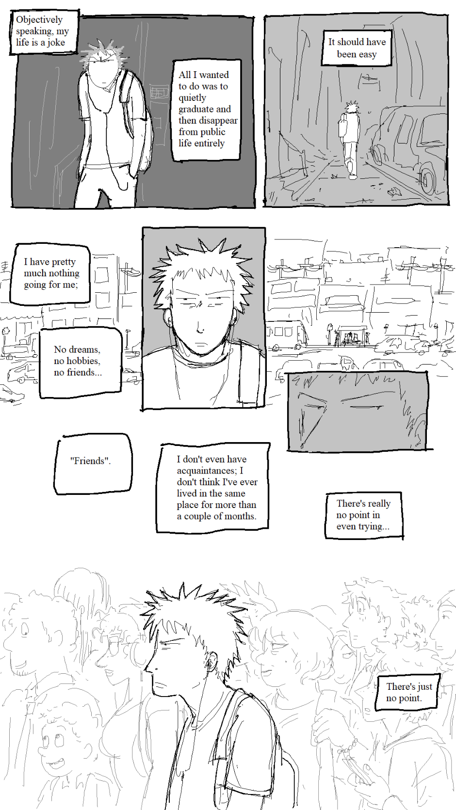 No friends? No problem for Grayson, a detached loner just trying to make it through his last year of high school, preferably as silently and with as little consequence as possible. So long as he can keep his head down and stay out of trouble, his goal of graduating and becoming a true hermit should be within his reach... Unfortunately for him, he catches the eye of some guy named Felix, who is for some reason determined to get to become his friend. This could go anywhere.