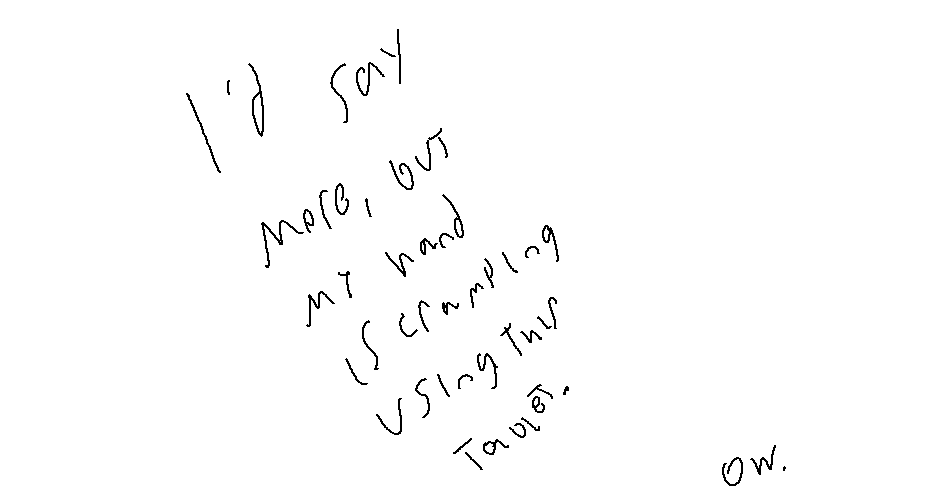 Writing by hand with a tablet is uncomfortable. Kudos to the people that do it.