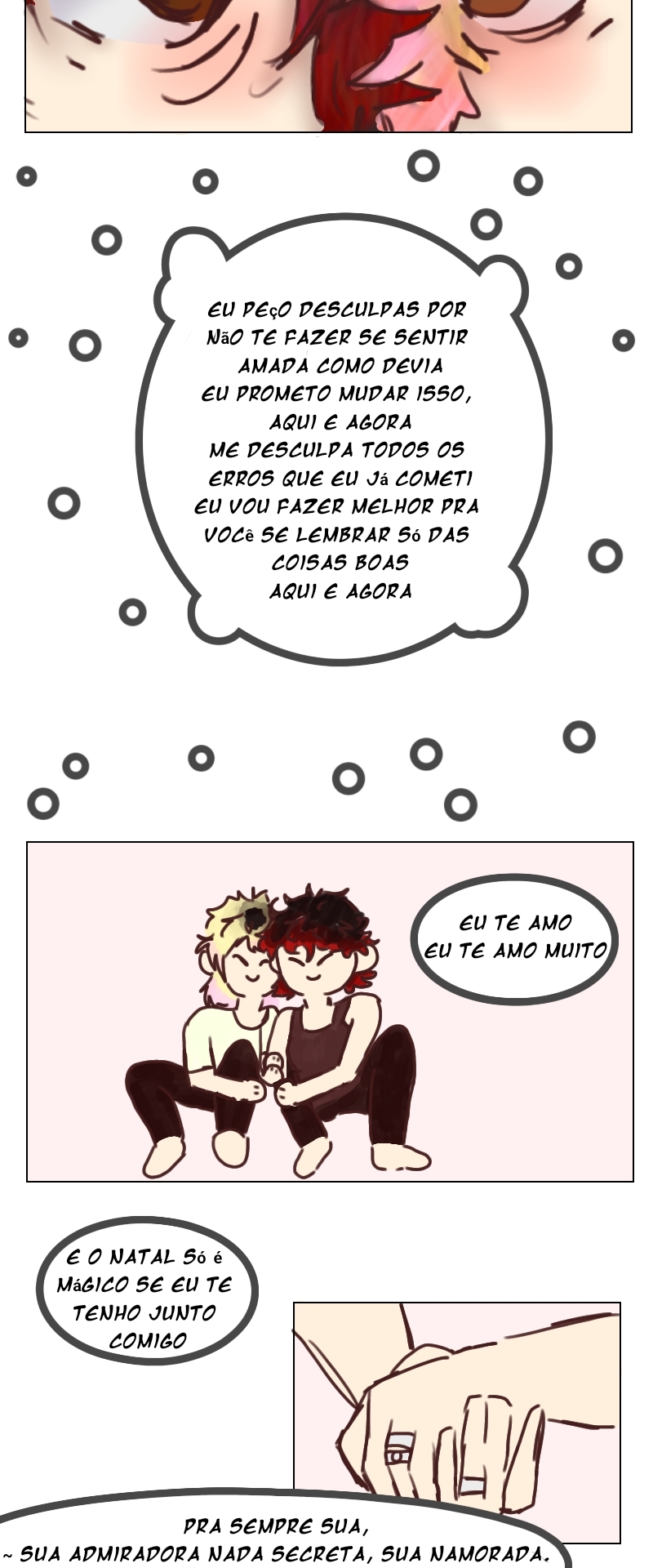 OOOOOOOOH MEU DEUS EU TO CHORANDO QUE COISA MAIS FOFA AMOR!!!!!!!! no começo eu estava tipo "nossa isso parece muito a arte da minha namorada que legal" MDS MDS que coisa mais fofa eu te amo tanto, tanto mesmo, você é quem me completa e me torna melhor todo dia, eu te amo com o meu coração, corpo, alma e espírito...