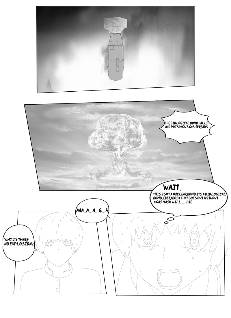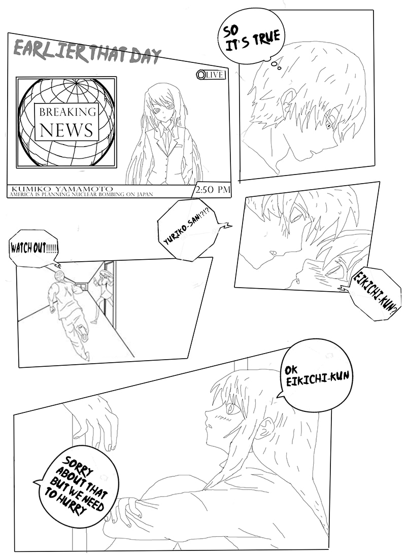 Its about nuclear war between Japan and America.America is planing on launching nuclear bomb on Japan.Where story begins in high school where is main character.