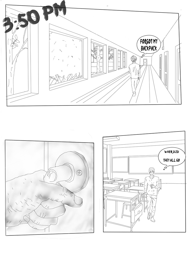 Don't wanna spoil too much.But story happens when main character and his friend meet at school and run for shelter.Where's the friend...
