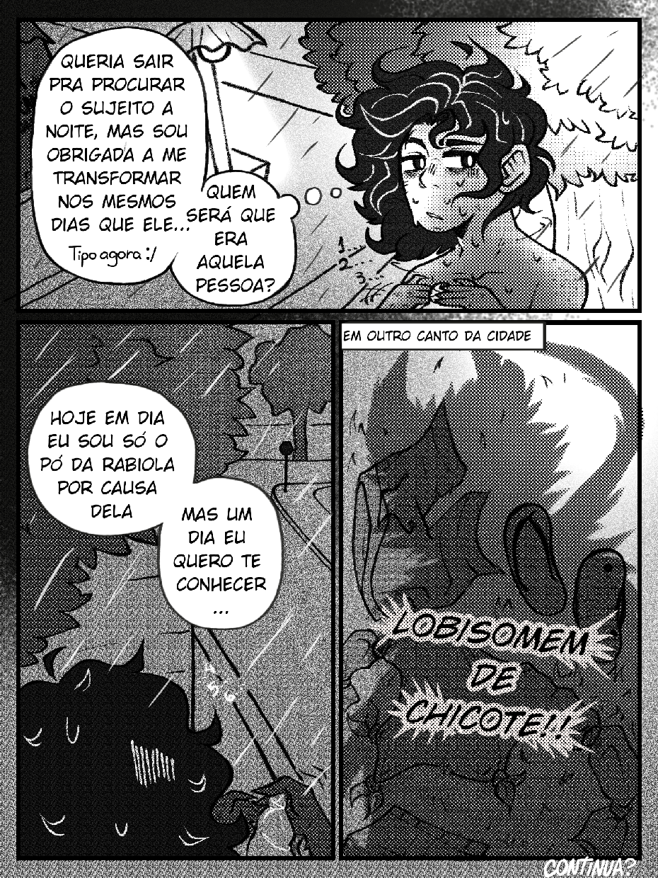 Finalmente disponível no tapas!! Aos novos leitores, esse quadrinho é feito como hobby, então espero que entendam a demora pra sair novos capítulos. Quem será o tal lobisomem do rabo de chicote? TO BE CONTINUED >:D
