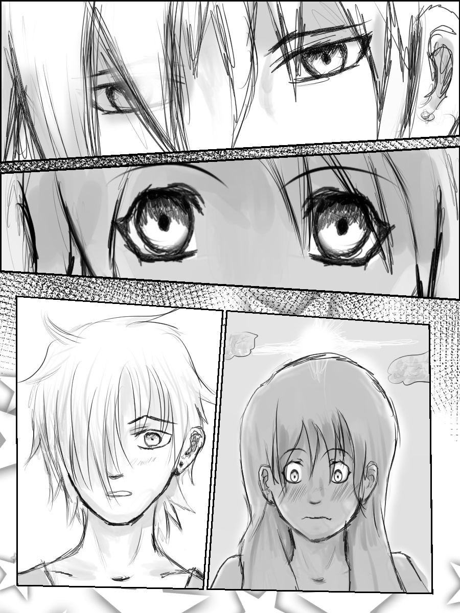 Don't say it's horrible, even for a test. I really like the close-up of the faces. I also really liked the way you used different textures for the darkness when you hear his/her(?) mind.