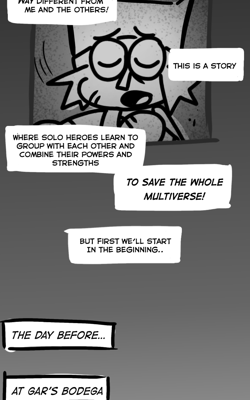 This is a story where solo heroes learn to group with each other and combine their powers and strengths to save the whole multiverse!"