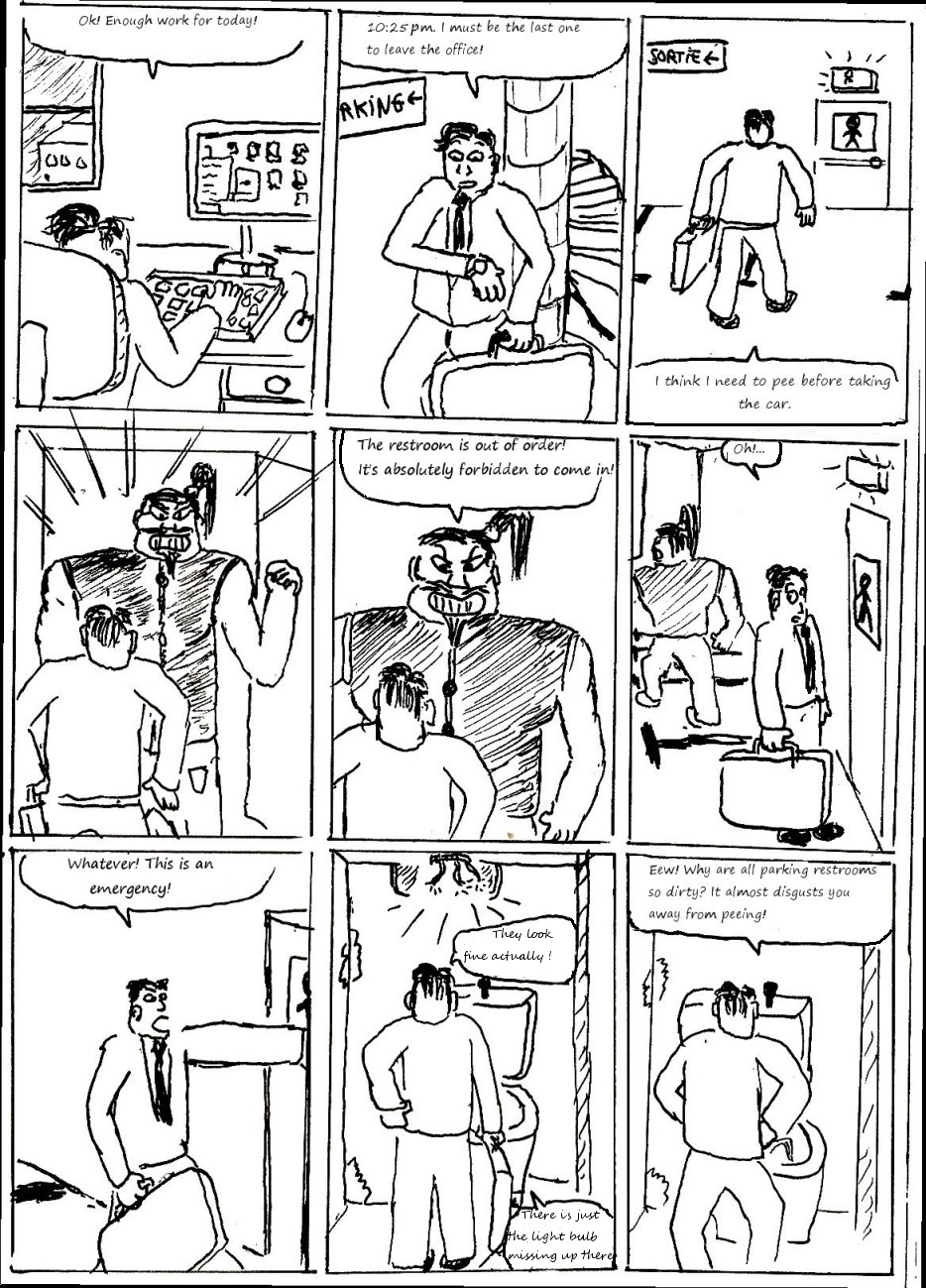 Have you ever feared breaking the toilet lock and getting stuck in the toilets? This is what happens to Mister Latrin in a public restroom one evening.