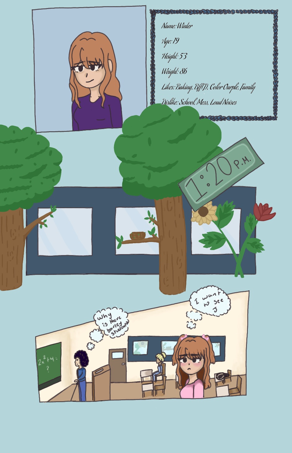 One of the girls falls in love with her bff( J ), but she doesnt know if her bff likes her back. Her bff is figuring out what's her sexuality is and questioning if she likes her bff (W). Both girls dont know that they might like eachother. End the end they would probably be ....