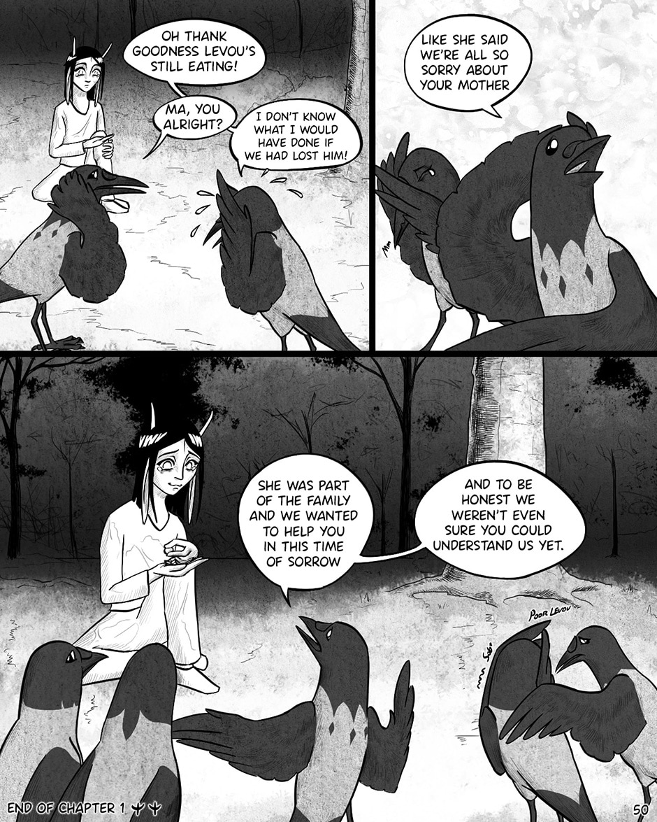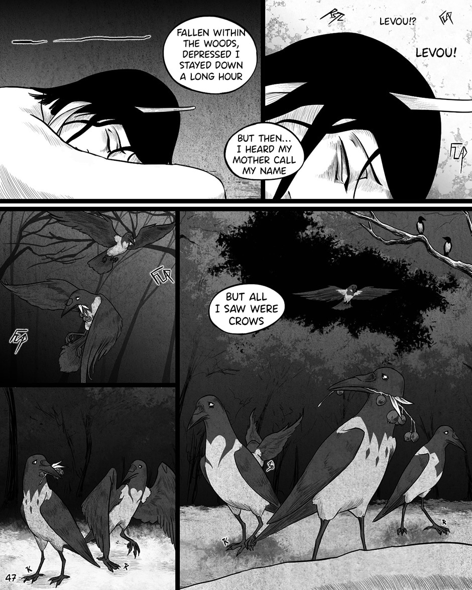 Levou, the main protagonist who can communicate with crows, tells their life story. Tis a tale which tells of their adventures throughout their stormy youth.