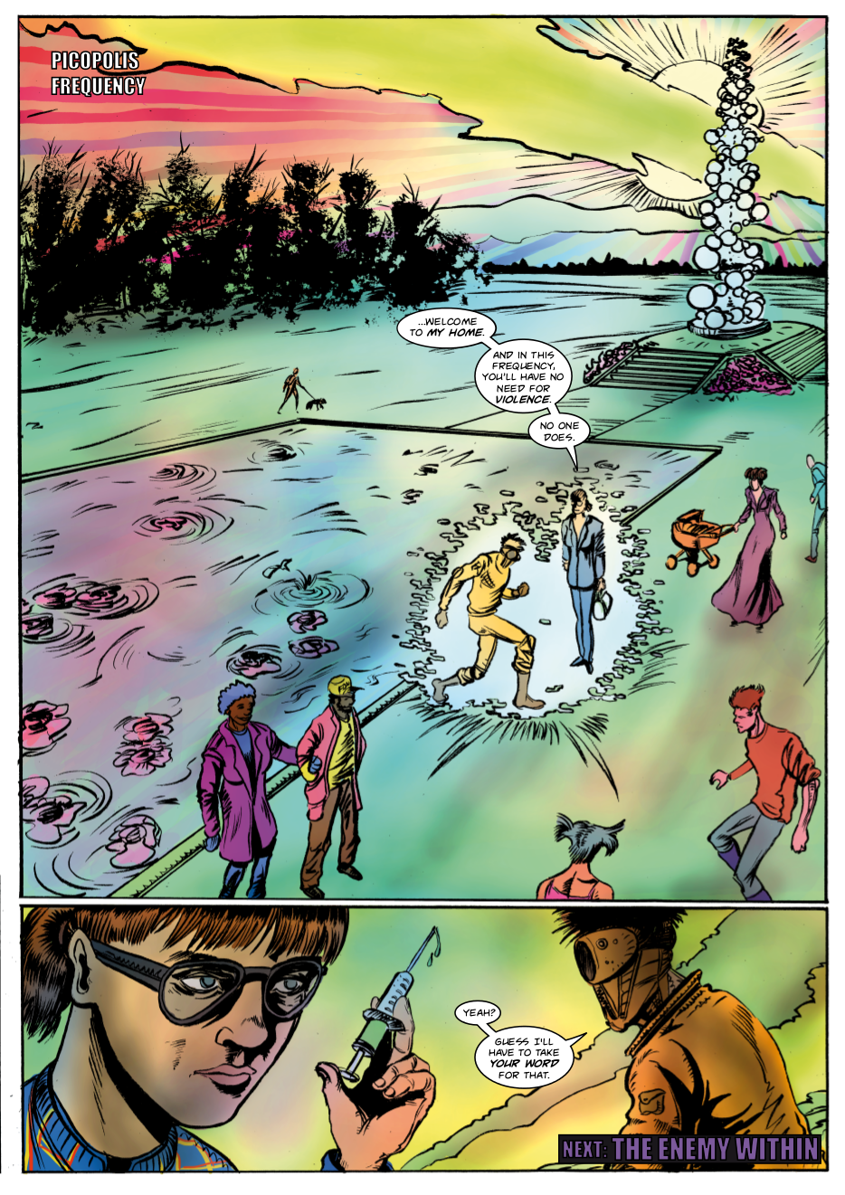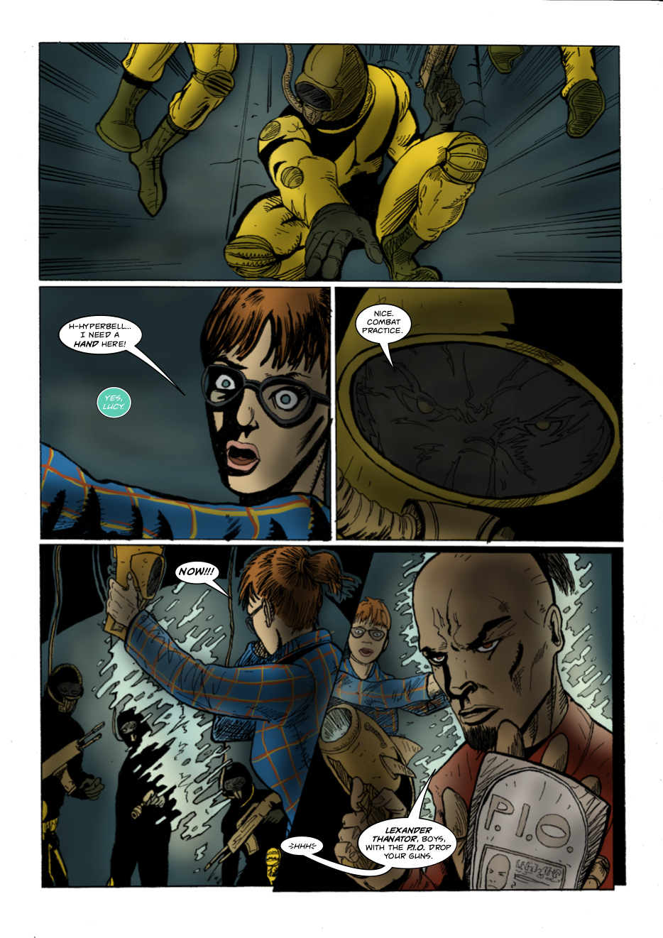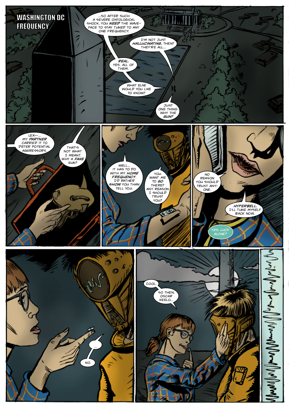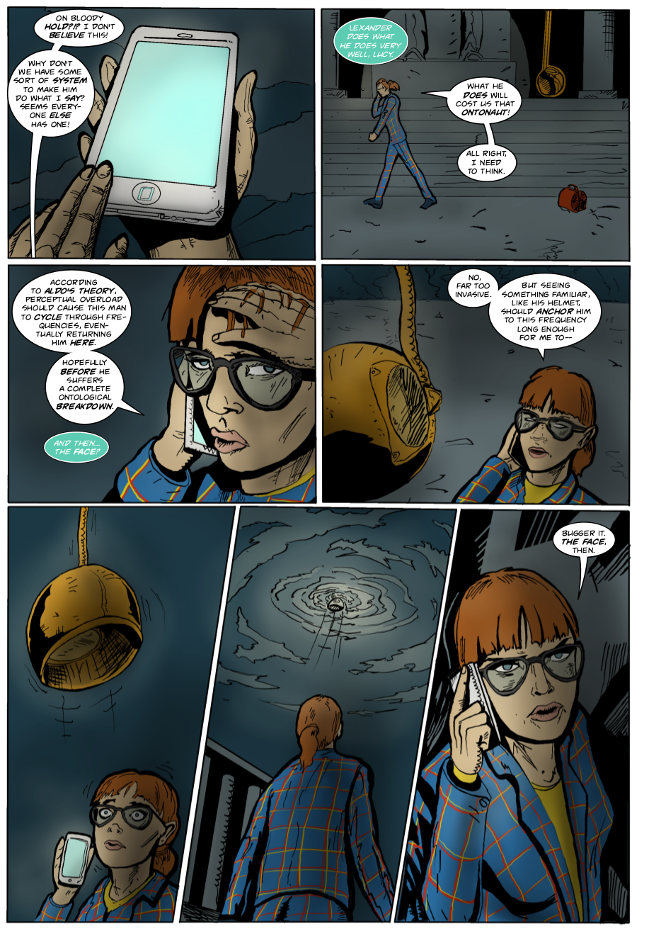 Interdimensional spies Lexander Thanator and Lucy Xennon chase a mysterious stranger across realities. Script: Lars Schwed Nygård Pencils & inks: Laszlo Seber Colors: Seth Piper Inks: Eric Jones