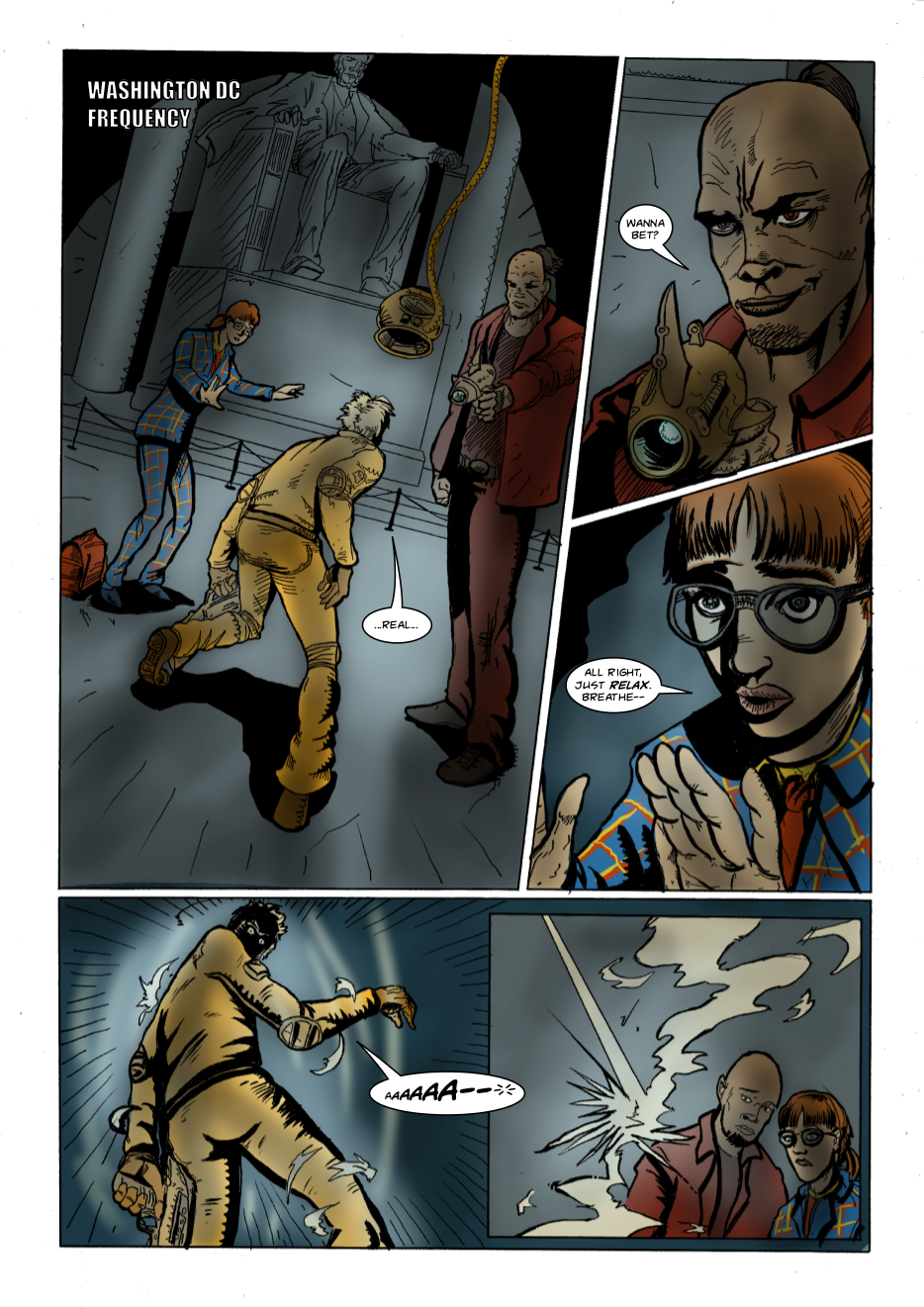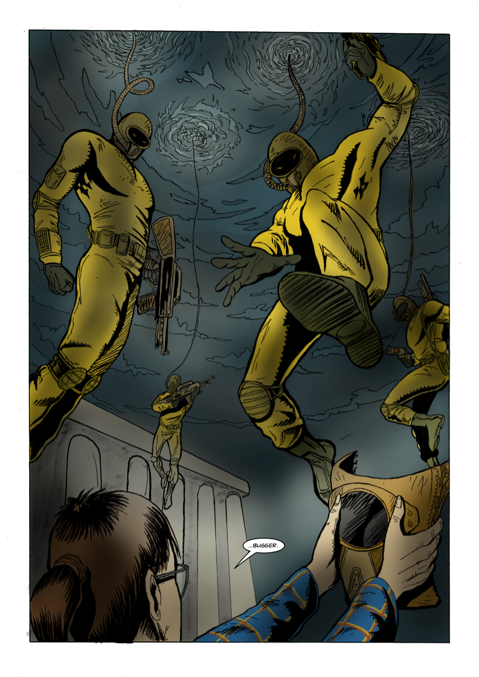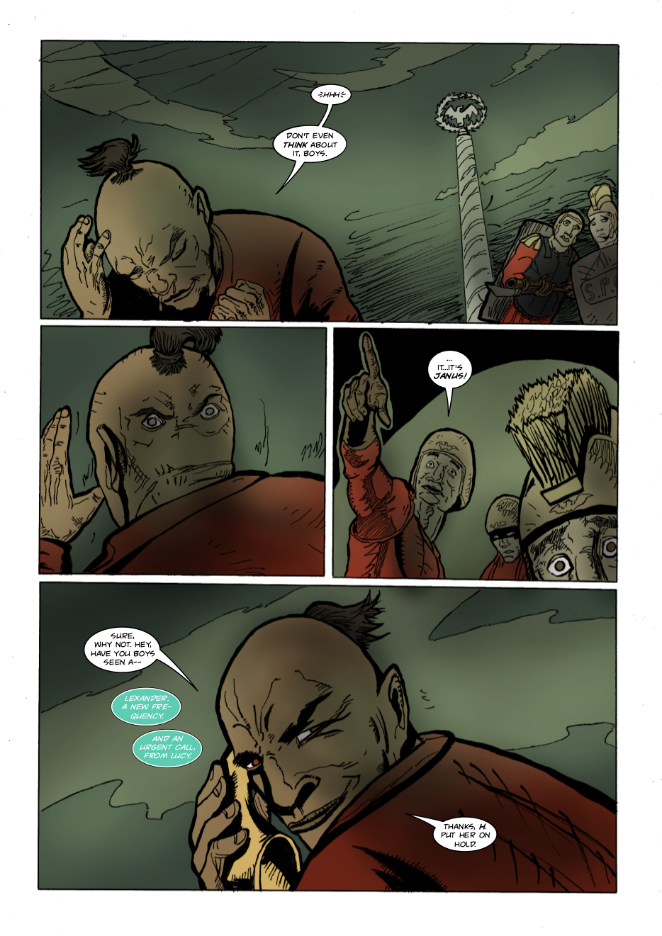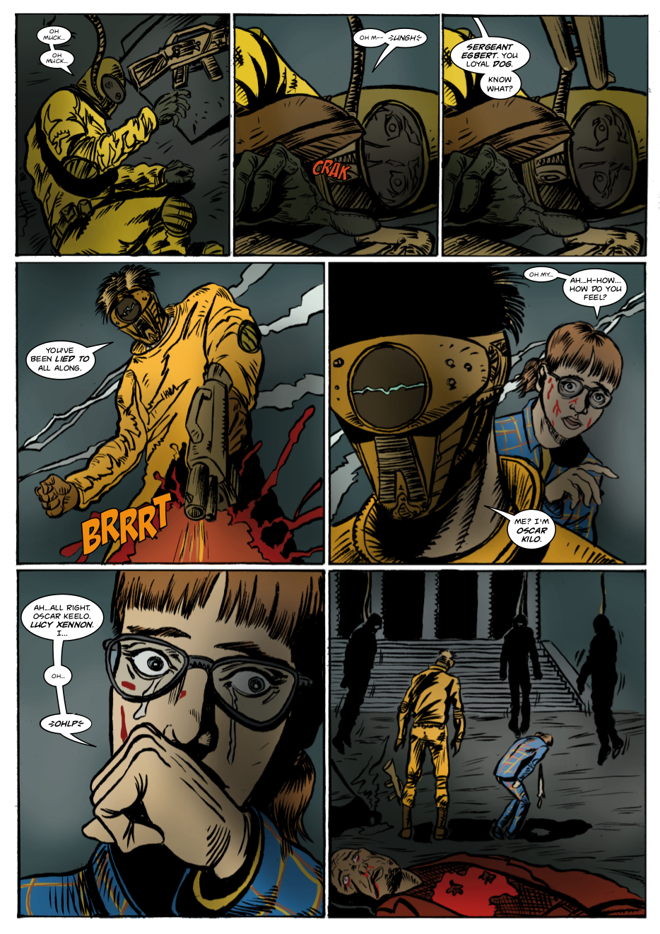 Interdimensional spies Lexander Thanator and Lucy Xennon chase a mysterious stranger across realities. Script: Lars Schwed Nygård Pencils & inks: Laszlo Seber Colors: Seth Piper Inks: Eric Jones