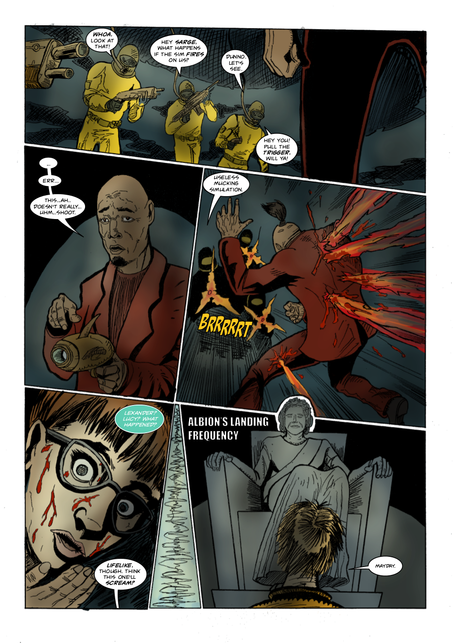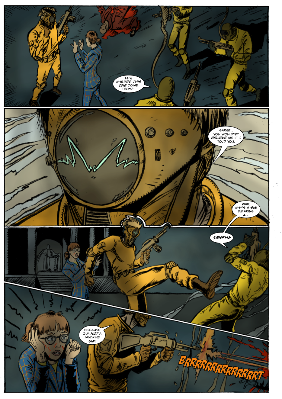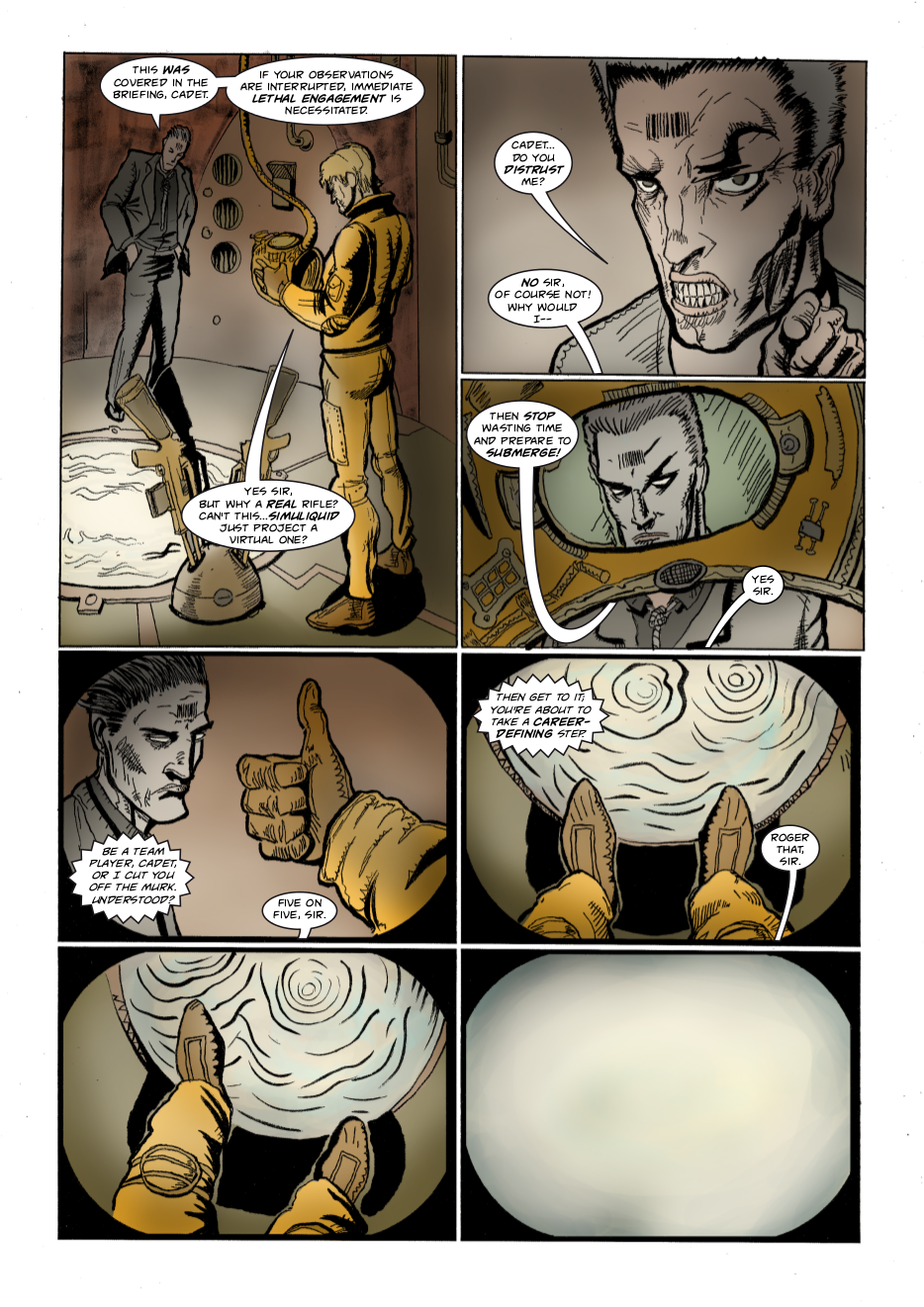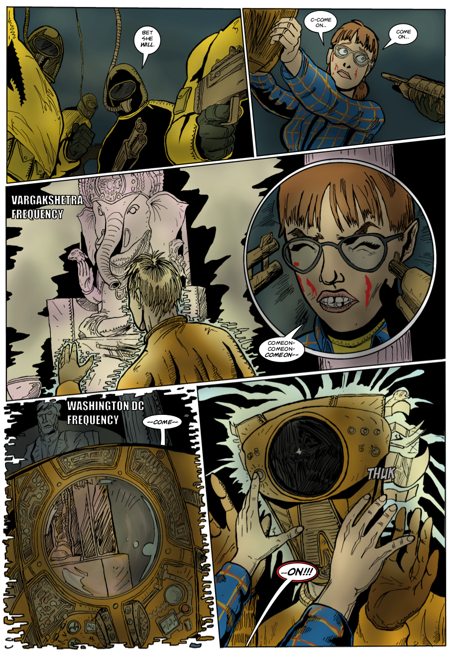 Interdimensional spies Lexander Thanator and Lucy Xennon chase a mysterious stranger across realities. Script: Lars Schwed Nygård Pencils & inks: Laszlo Seber Colors: Seth Piper Inks: Eric Jones