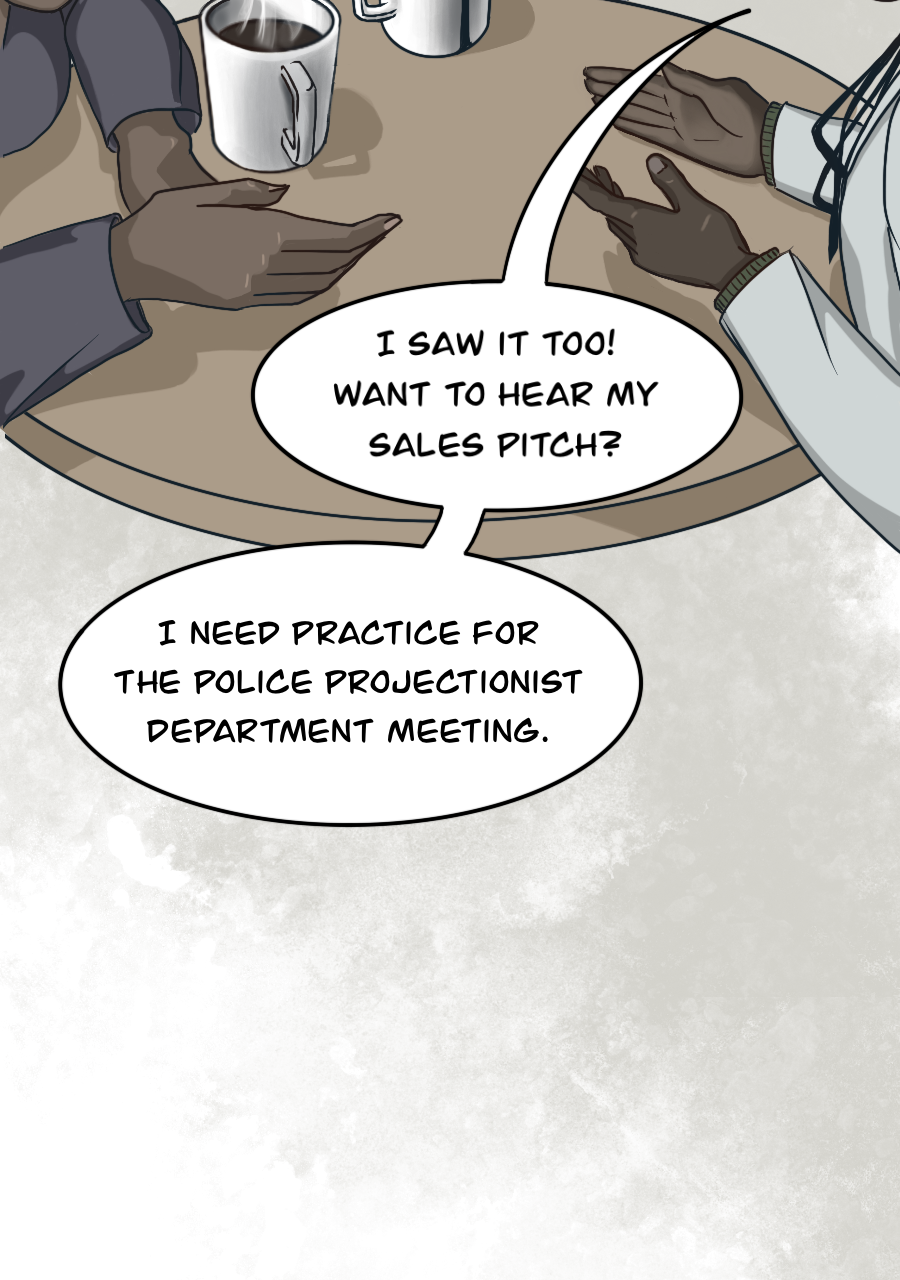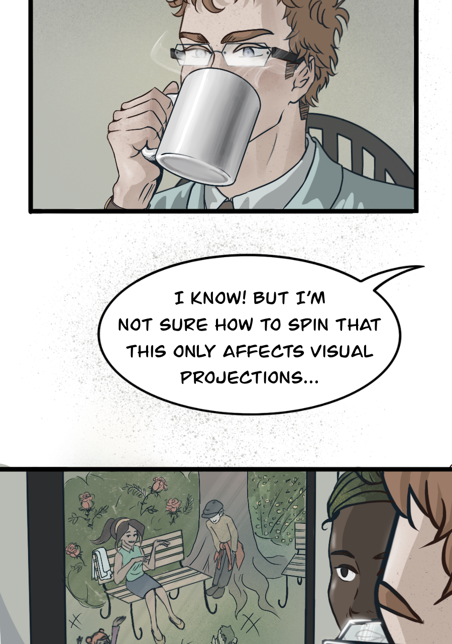 Dr. Evan Flynn is on the cusp of financial success and technological revolution with his new anti-illusion glasses about to hit the market and a client meeting set up with the Realist Regime’s very own Police Projectionist Department. But none of this brings him joy. In fact, he’s been feeling emptier than usual. That is, until he meets Nadia, an Idealist who is rebelling against the Realist Regime by creating projections to infuse color and life into their grim reality.