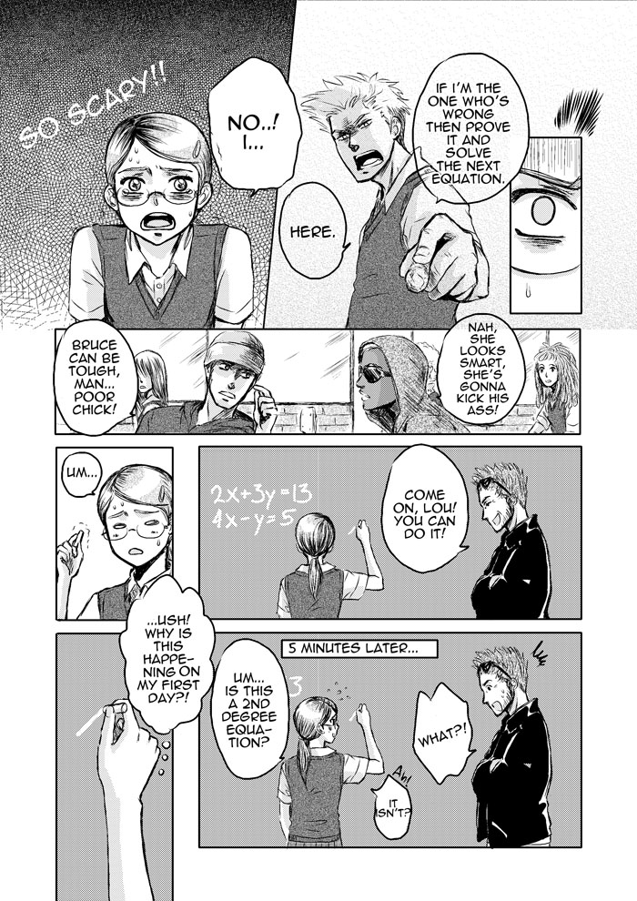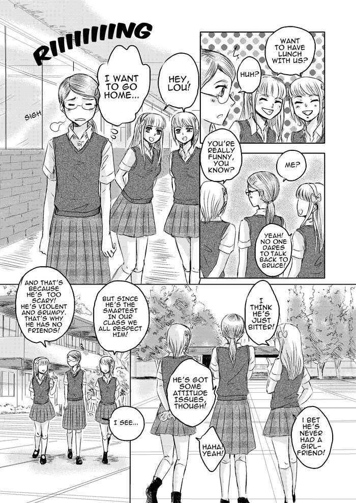 This is the story of Louise Barton, a former-rich girl that now has to attend a public high school filled with delinquents and weird people. Here, she meets Bruce, a rude and violent ruffian who's actually a top student, and Drew, a handsome and cool-looking guy who's actually a pretty calm and air-headed otaku. "Never judge a book by its cover", that's what she learnt once these 3 teenagers had to team up to save Louise from failing her exams...