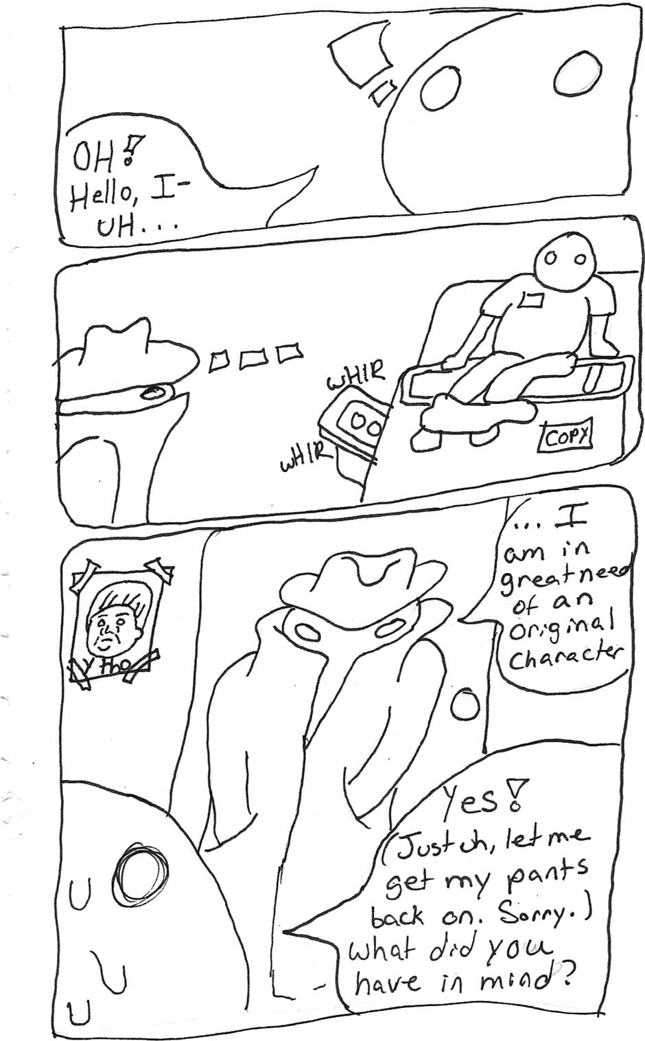 Mystery man arrives at a hole in the wall.