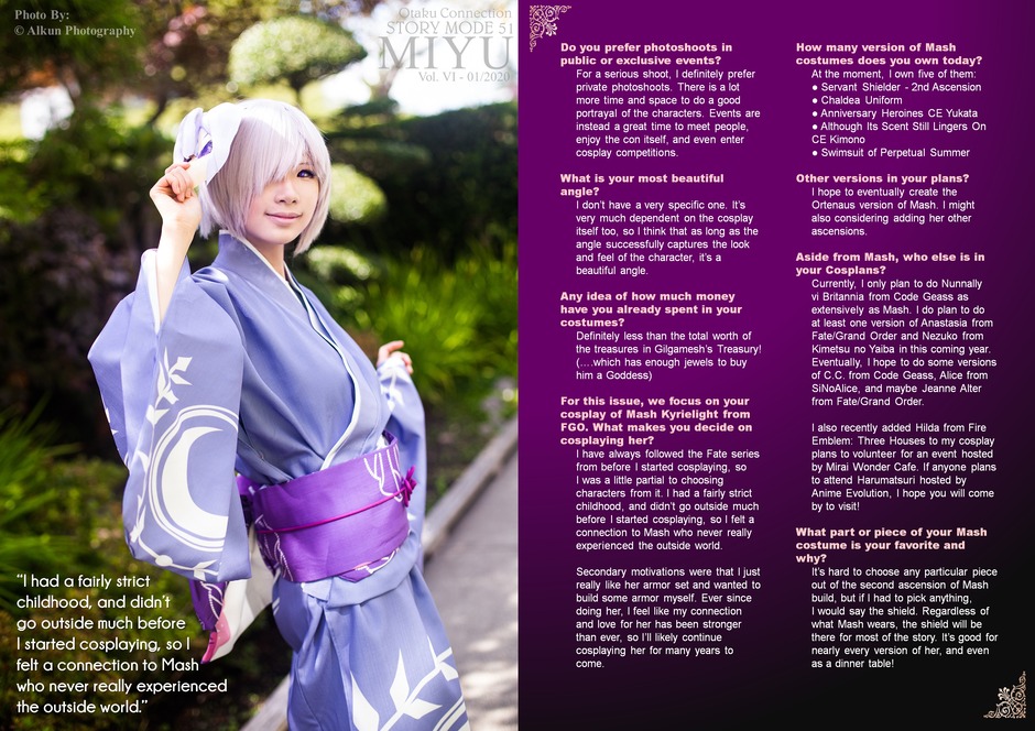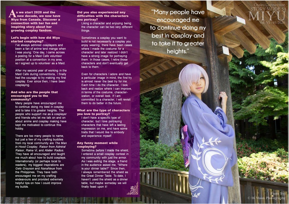 Following up our golden anniversary issues, we now present Miyu and her super awesome Mash Kyrielight cosplay! Read about her story and learn from she crafted her own shield.