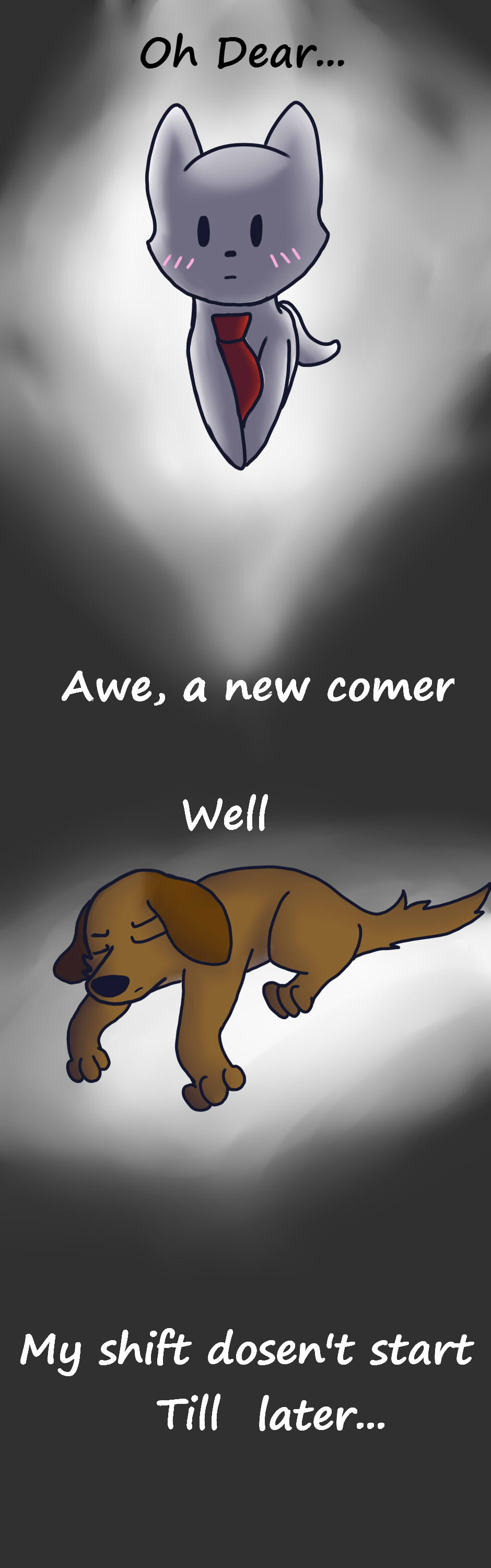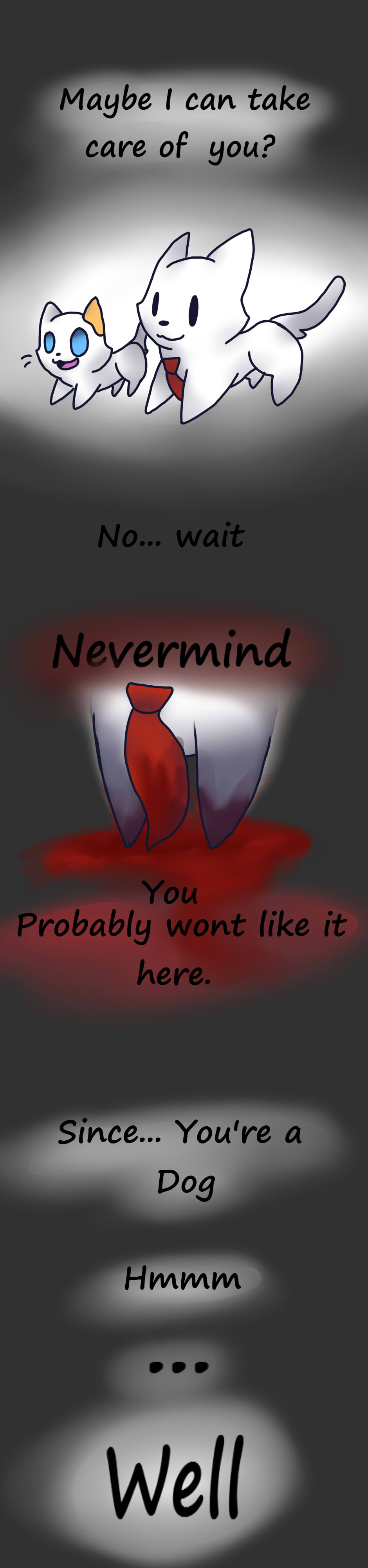 Jack, a Chocolate Lab that had happened to find this weird town, defiantly did not want to be apart of this town. So he had to trust the only cat in the town that didn't seem to mind him much, even if that cat has blood on his paws.