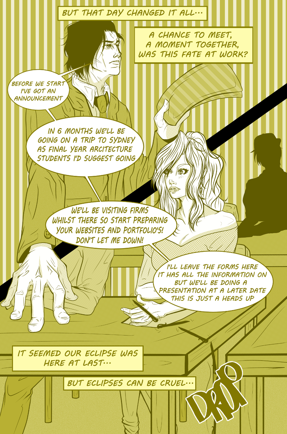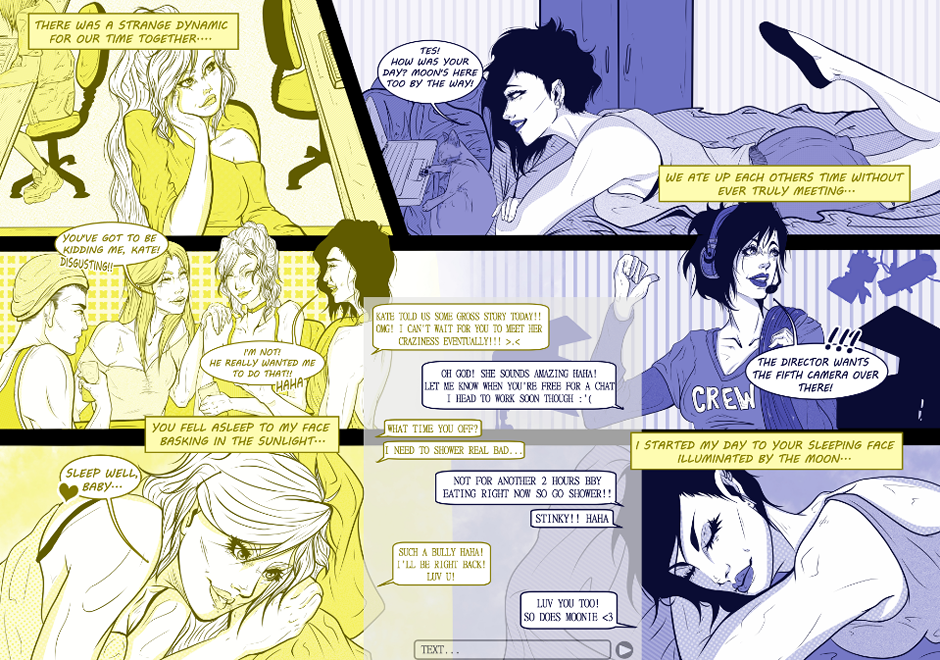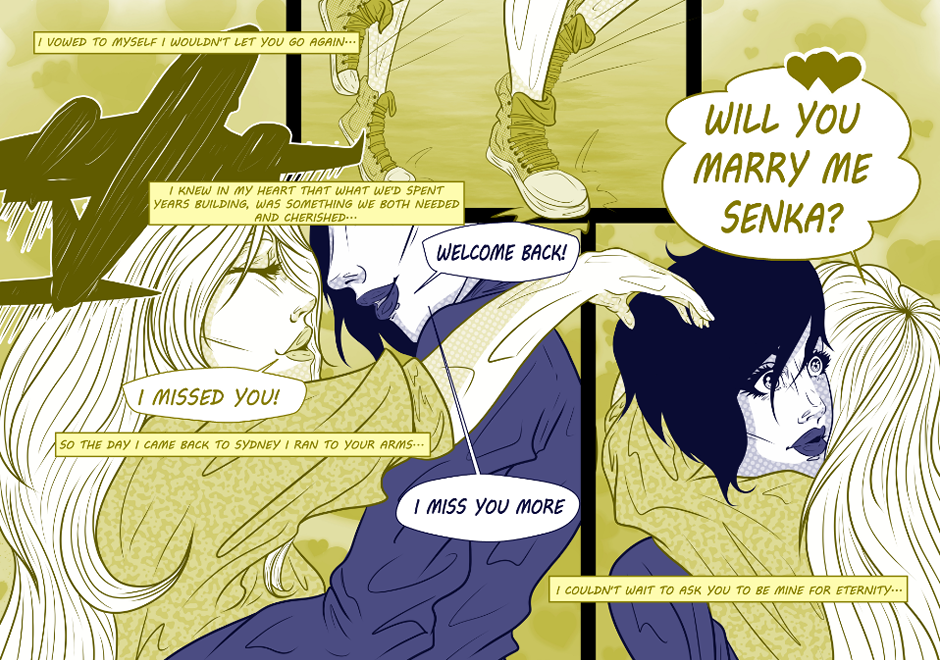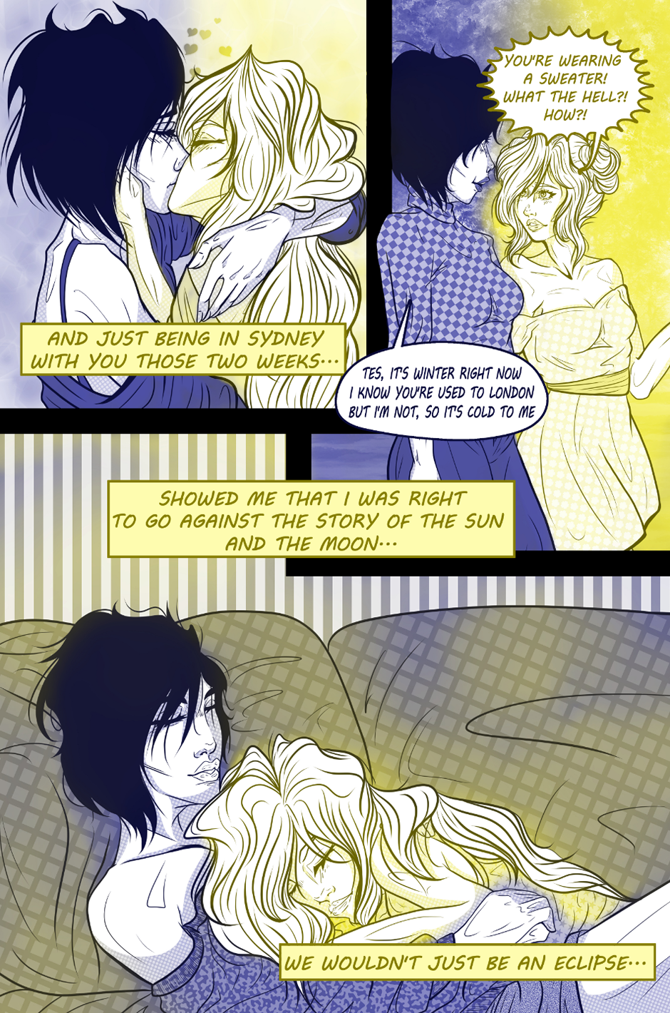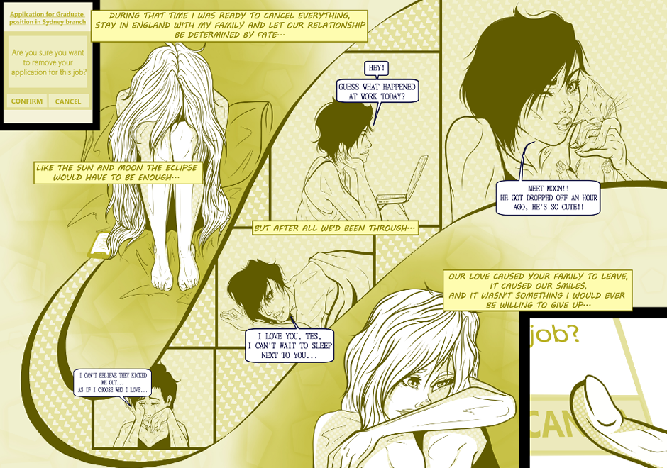The full 17 pages of the short love story between Tesni, an Architecture student from London, and Senka, an intern in a filming studio from Sydney. Representing the Sun and the Moon these two lovers will find out whether their relationship will bring them together for good, or tie them to fleeting moments together.