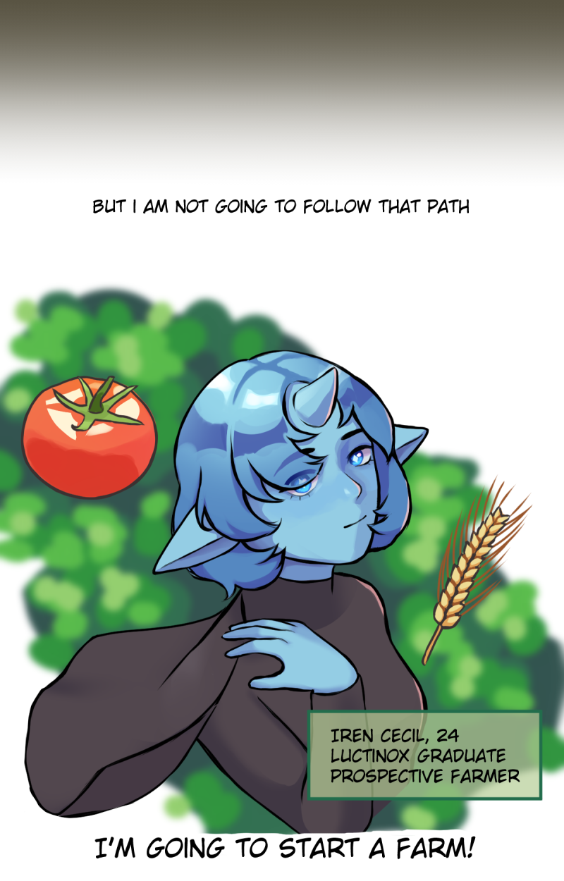 Iren has been training for a position in the military, but she'd rather start a farm! However, what awaits her is not the peaceful farm life she was hoping for... How will she deal with the strange encounters that follow? A story filled with lots of silly jokes, a bit of mystery and an abundance of cute girls. What does the title stand for? Find out in chapter 9.