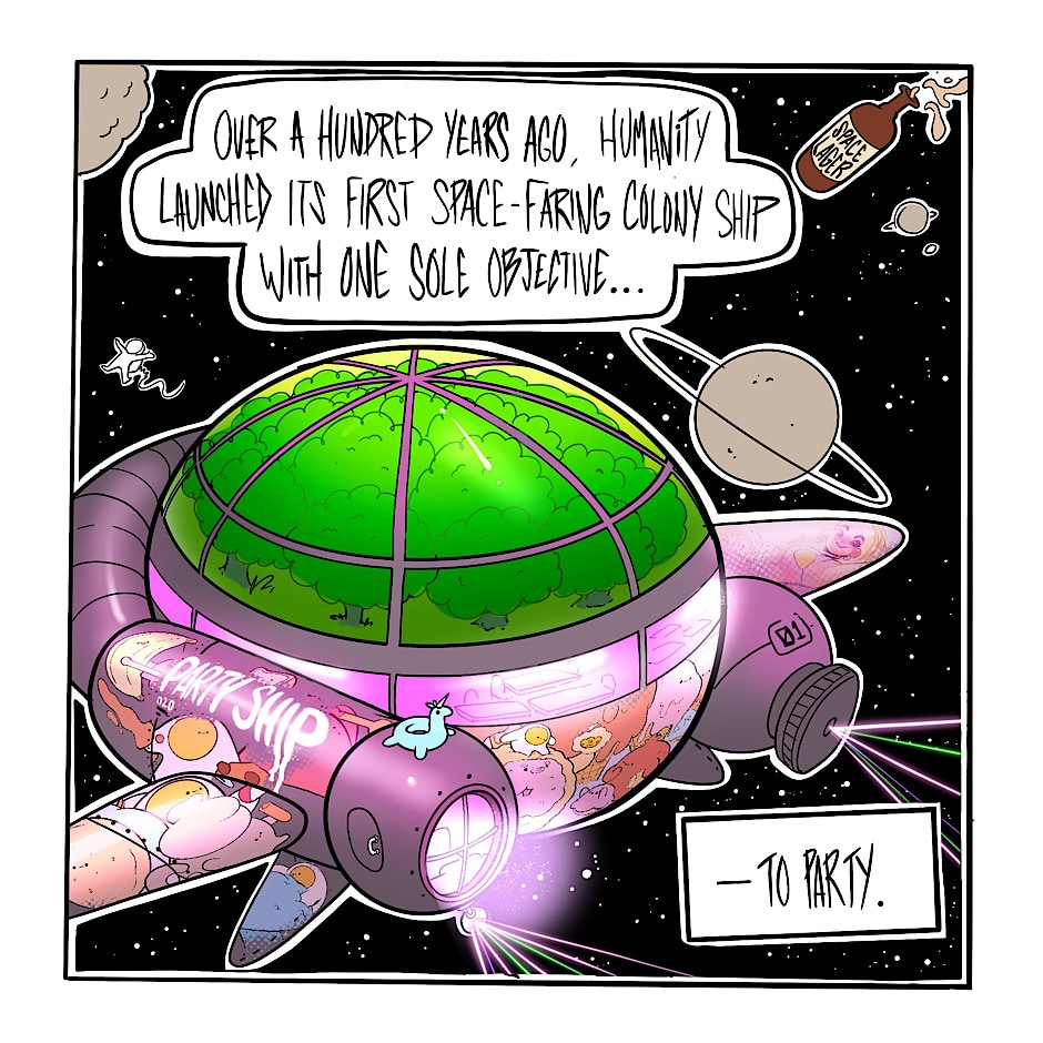 Tune into my social media to catch brand new Party Ship panels before they get posted here! Chapter 2 is cookin.