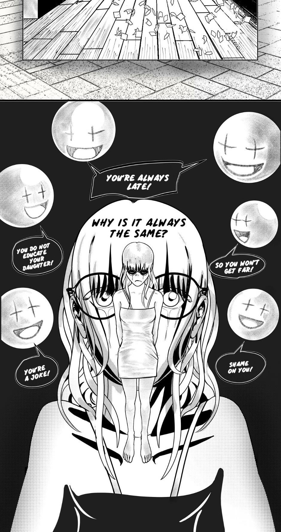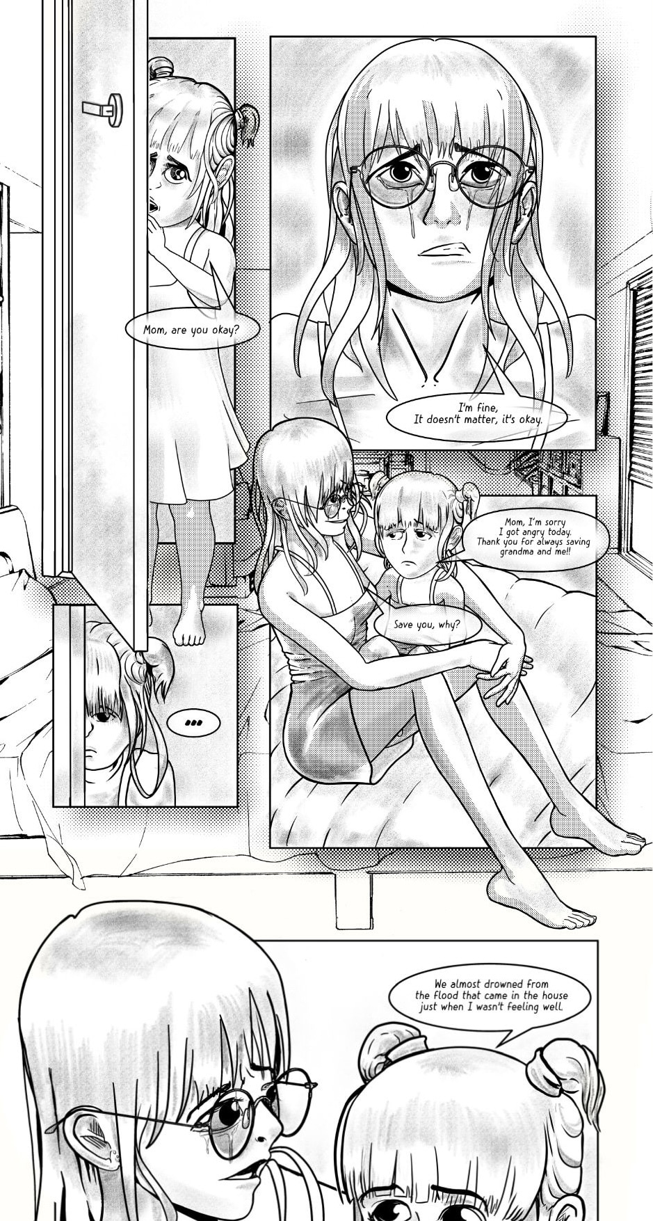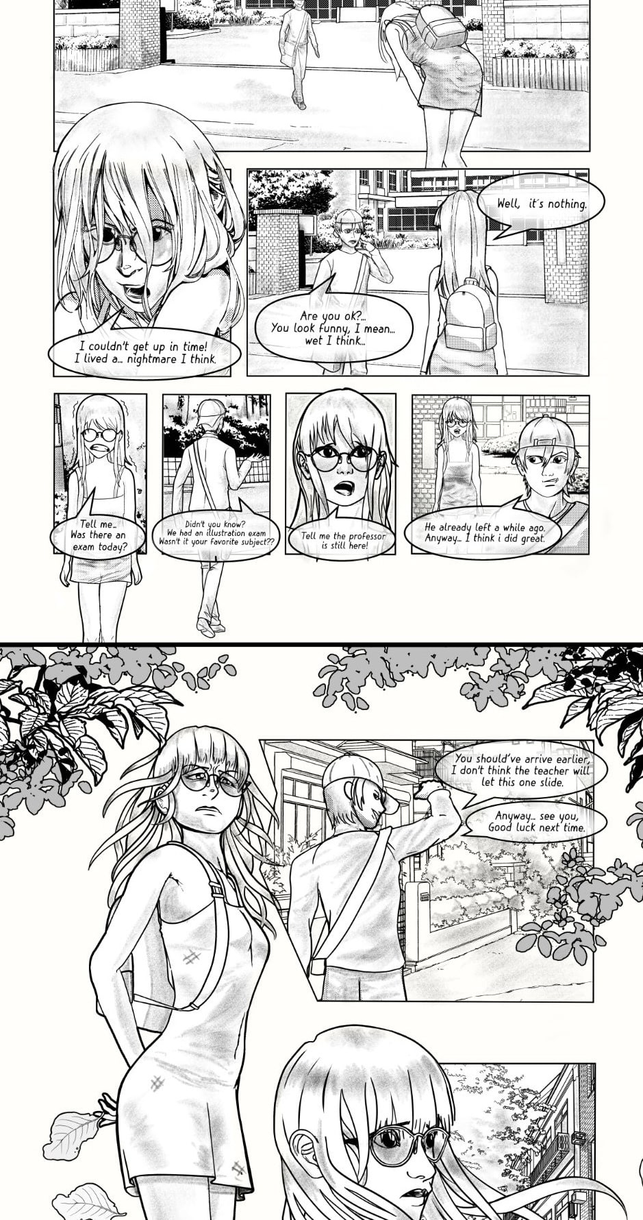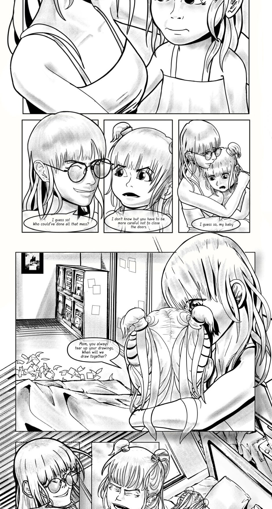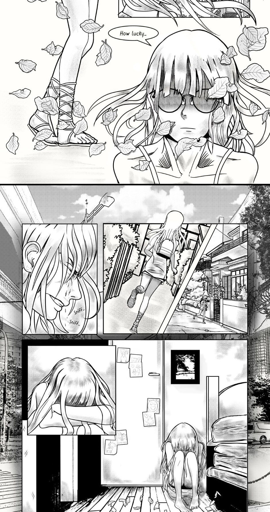 The swift transition from the energetic first half to the chaotic and sad second half was cool! It caught me off guard, it was completely unexpected, haha. The plot twist at the end blew me away as well! But even then I could still follow the story; the pacing was steady, just right. I like the way you used screentone-like shading in your artwork. That added a subtle texture and dimension to the illustrations. Wonderful job!
