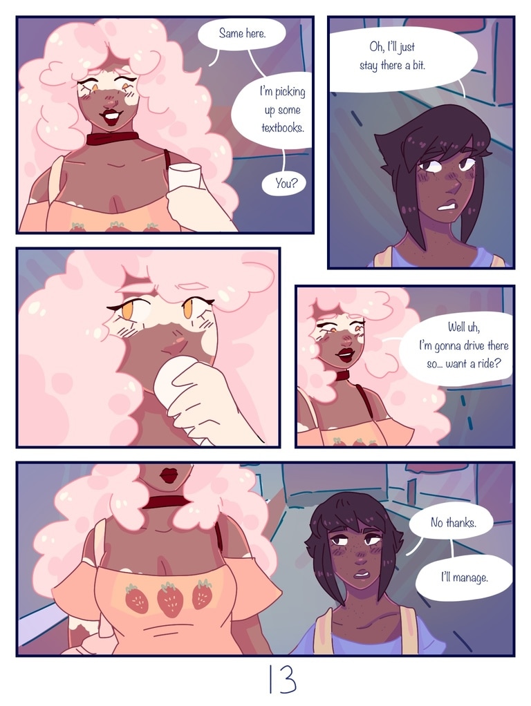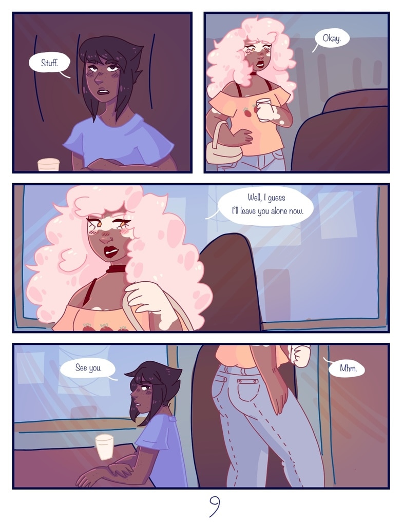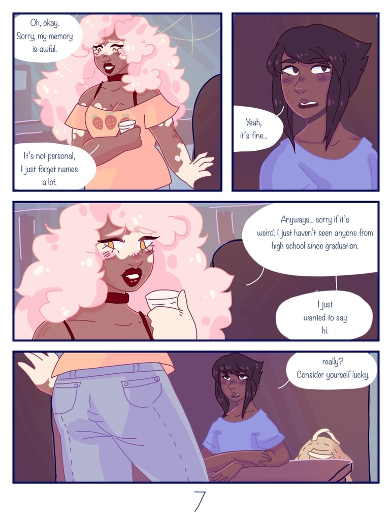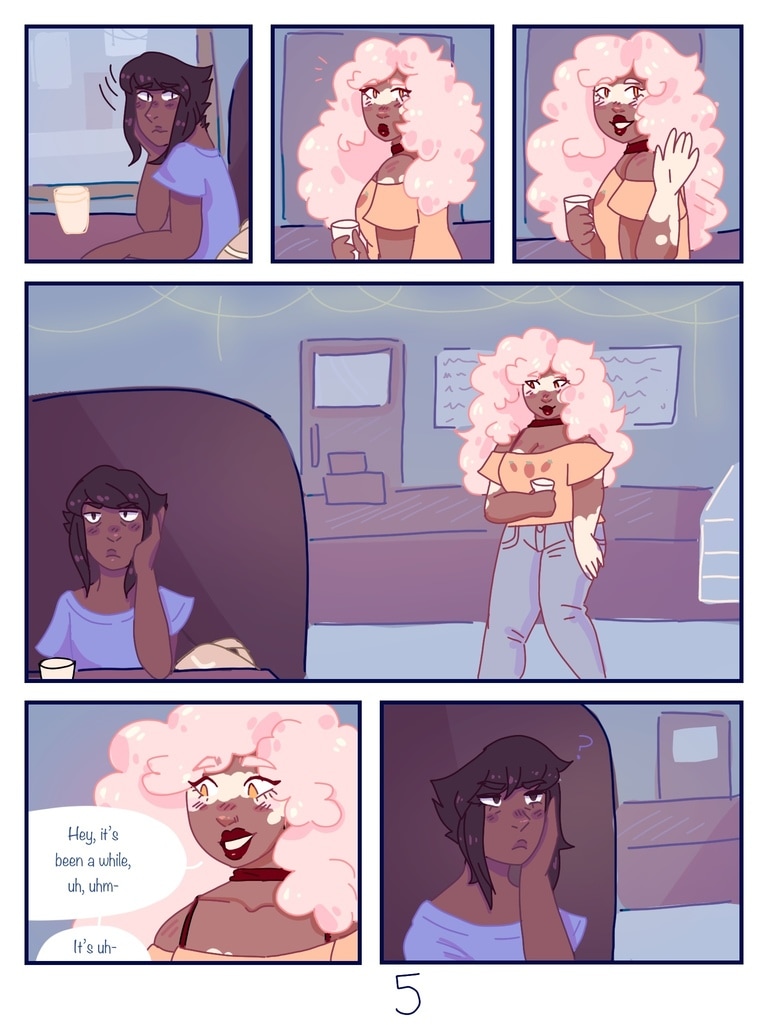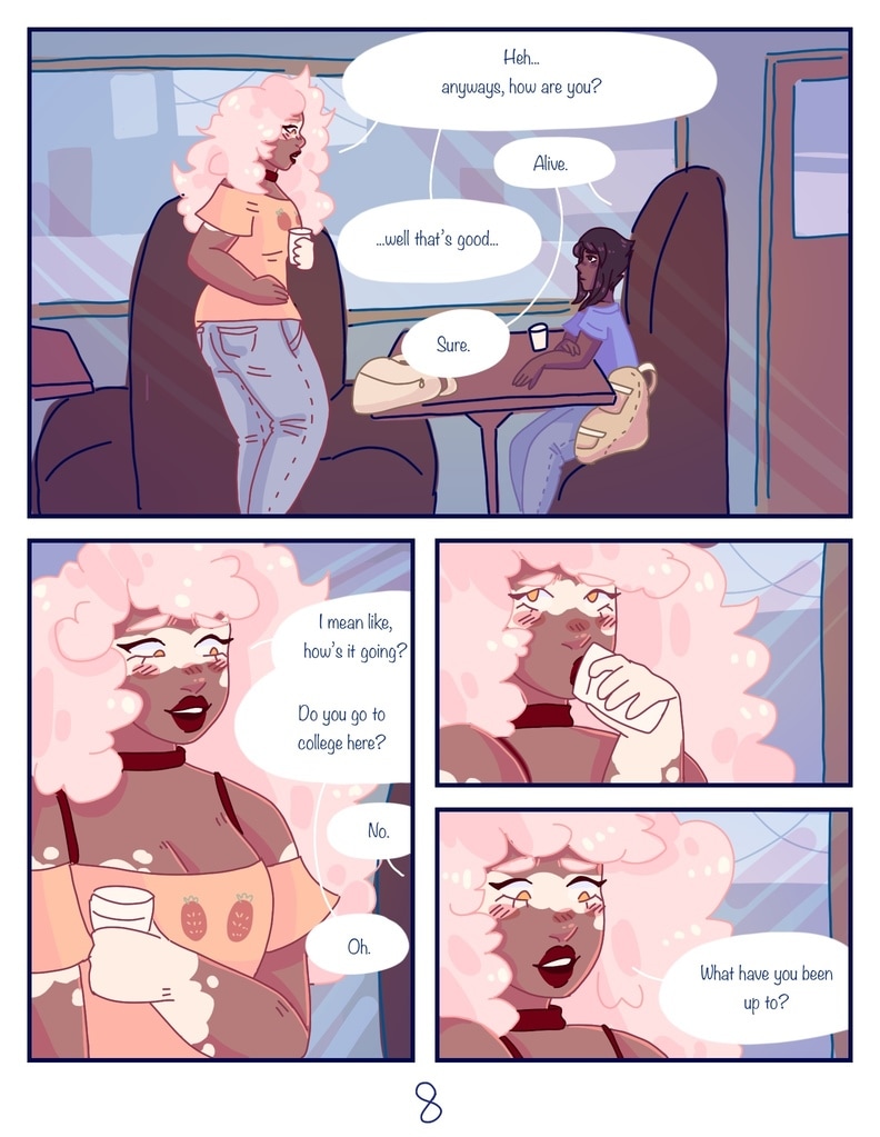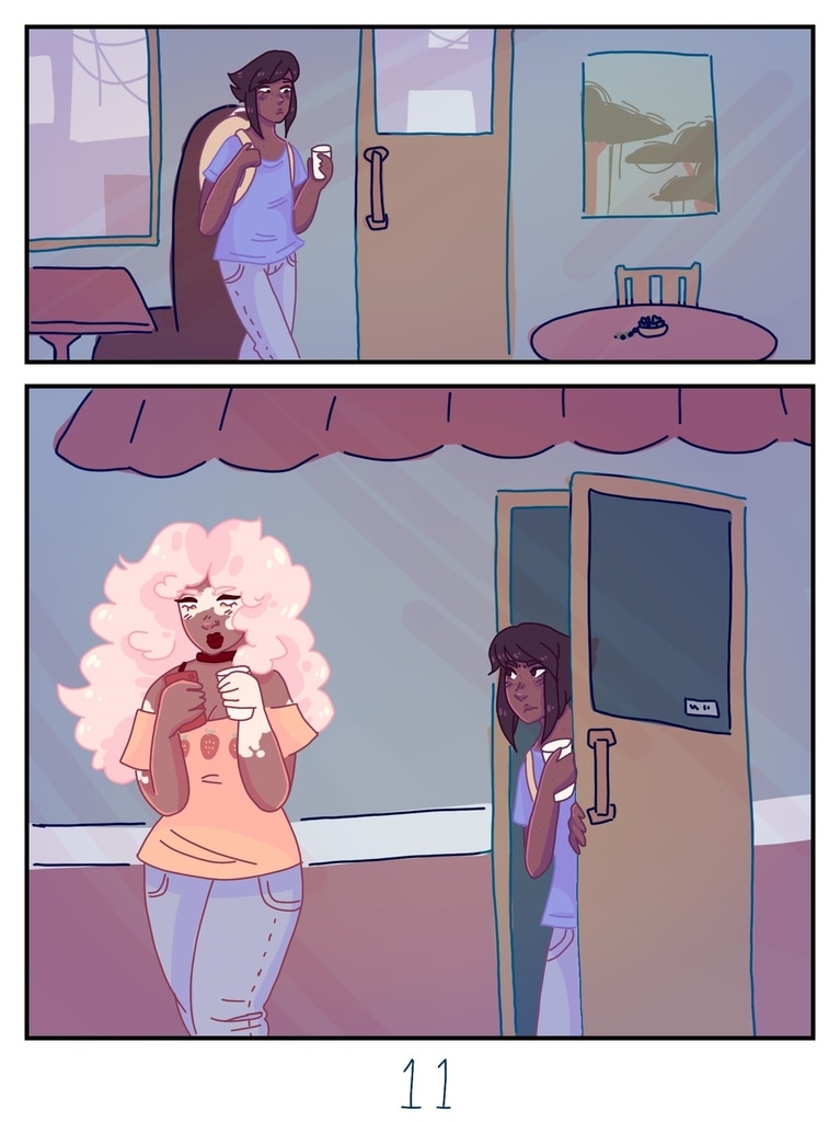 after Lapis is kicked out of her house for being trans, Jasper offers to be roommates with her, giving her a chance to start fresh and make new friends. (yes, this is a steven universe human au fancomic, but if you don't watch su you can still read it and understand the plot.)