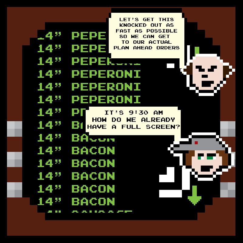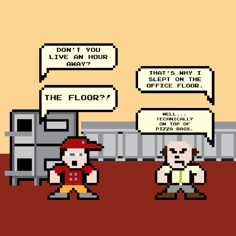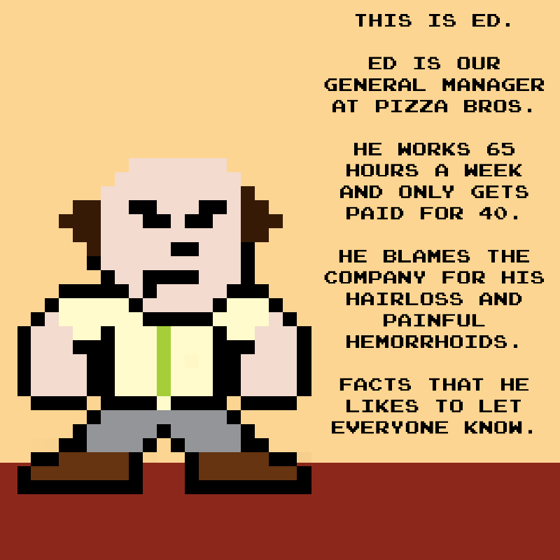 At Pizza Bros, the shit rolls down hill. Join the Pizza Bros crew as they fight their way through dinner rushes, pain in the ass customers, awkward situations, ruthless yet strange competition, and insane upper management. It seems like a recipe for disaster, but some how the crew at the Pizza Bros Chesterwood store keeps slinging the dough.