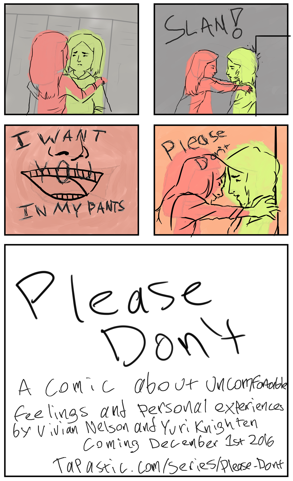 This is the preview for Please Don't. I hope this gets the Basic Idea across. I also plan to have either myself (Vivian) or Yuri write a blog post to accompany each issue.