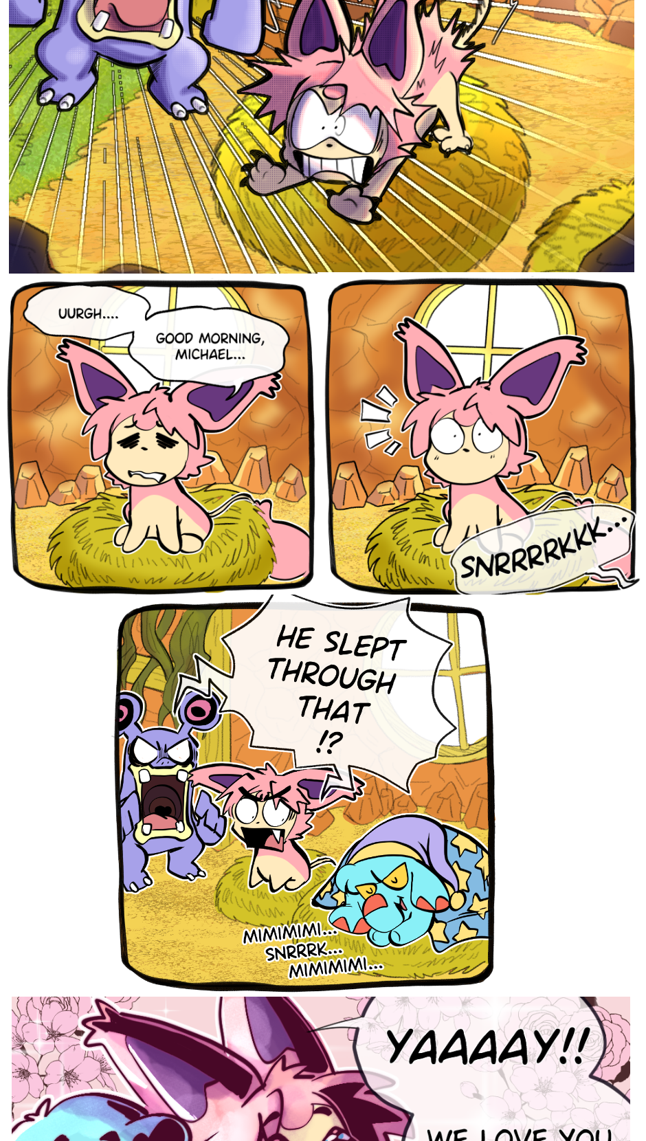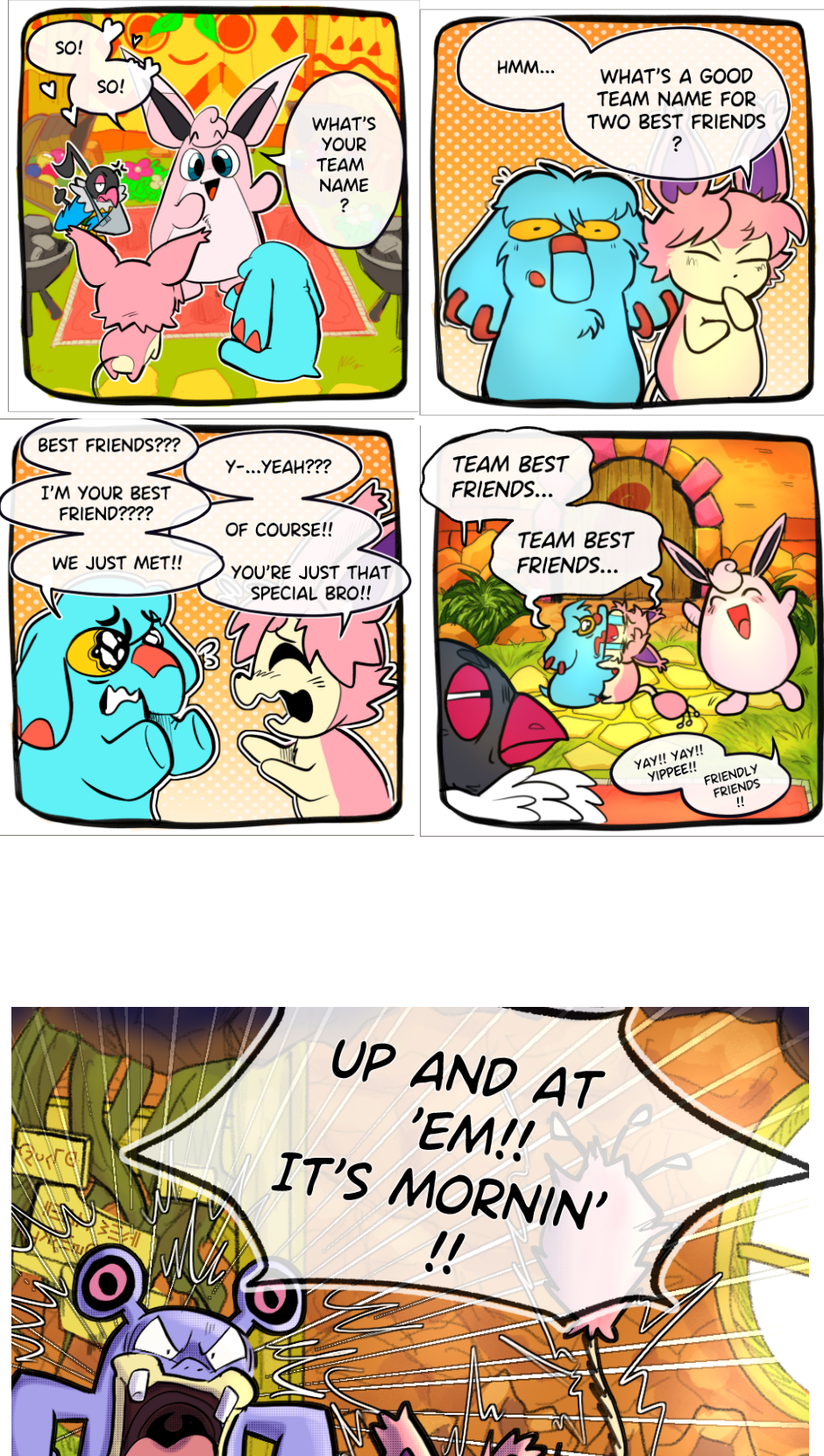 Follow the adventures of Michael the Phanpy and Charlie the Skitty as they train at Wigglytuff's Guild to become a full fledged team of explorers! As time, darkness (and sky??? I guess???) warp around them and threaten to destroy the world as they know it, Team Best Friends will be...... well lets be honest, they're probably at Spinda's.