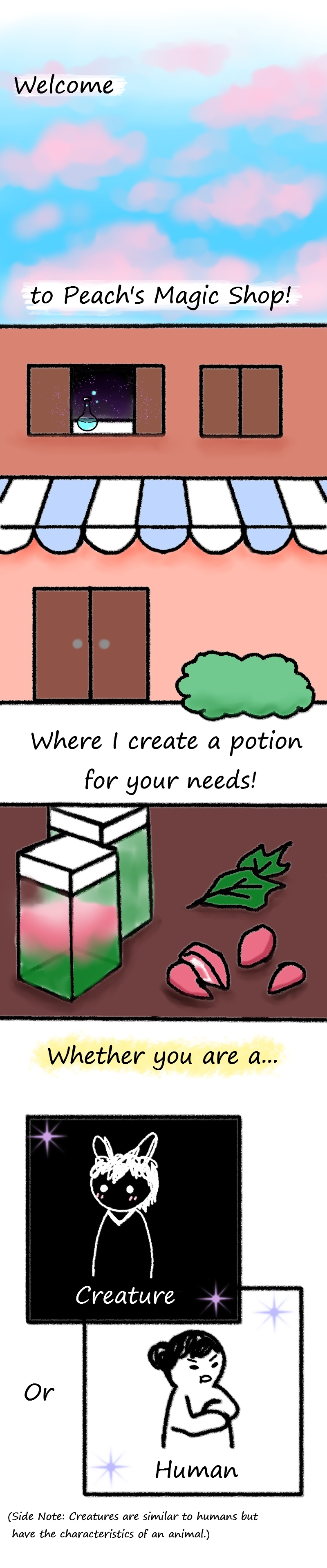 This is my first comic and I've been wanting to tell a story for a long time. I hope that this will help me improve on drawing over time. It is also available at Webtoon.