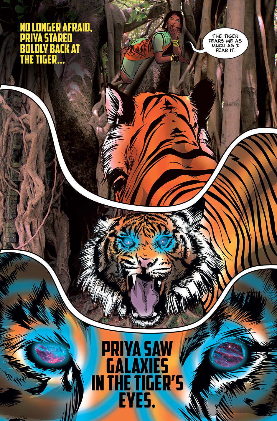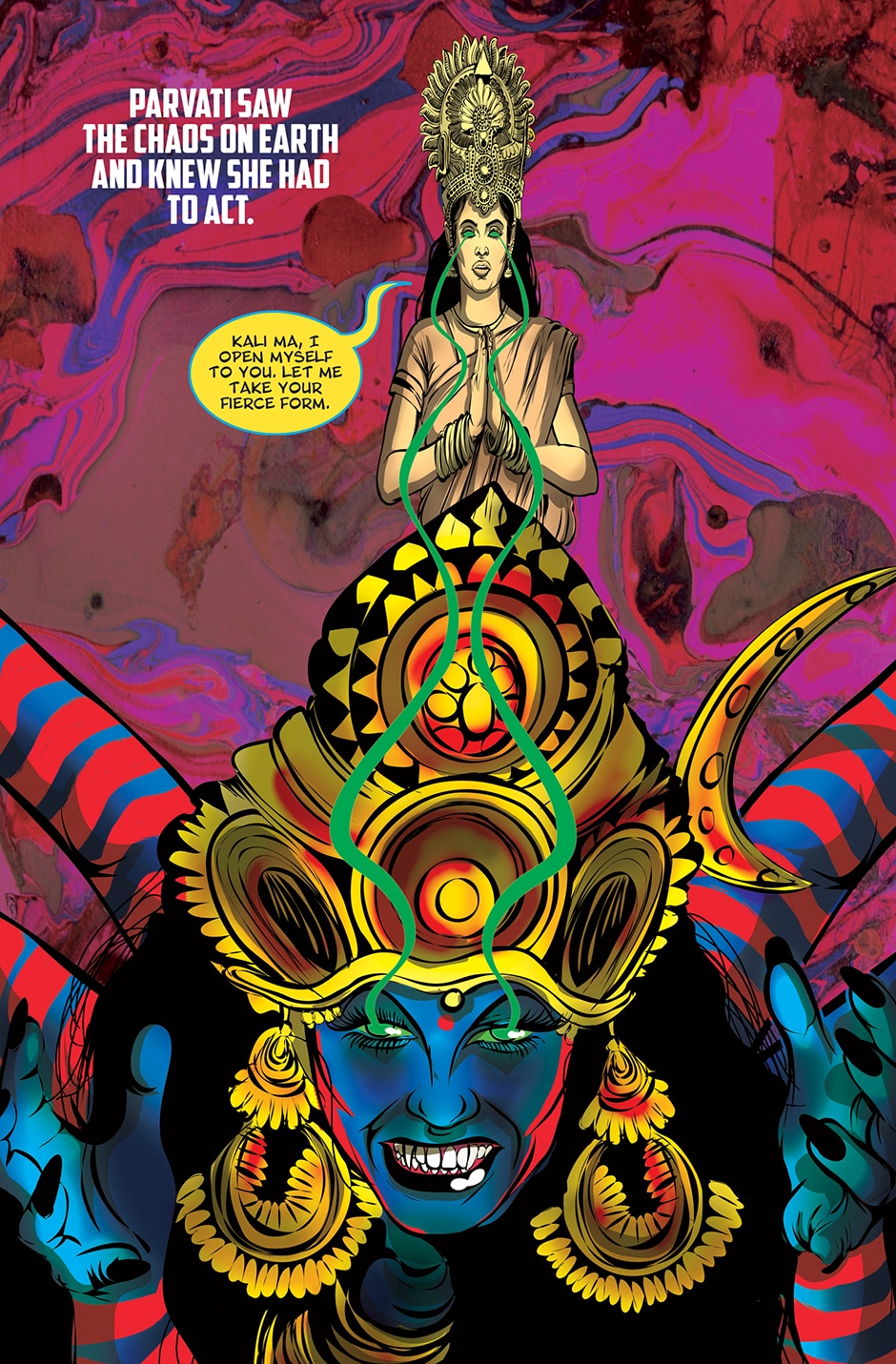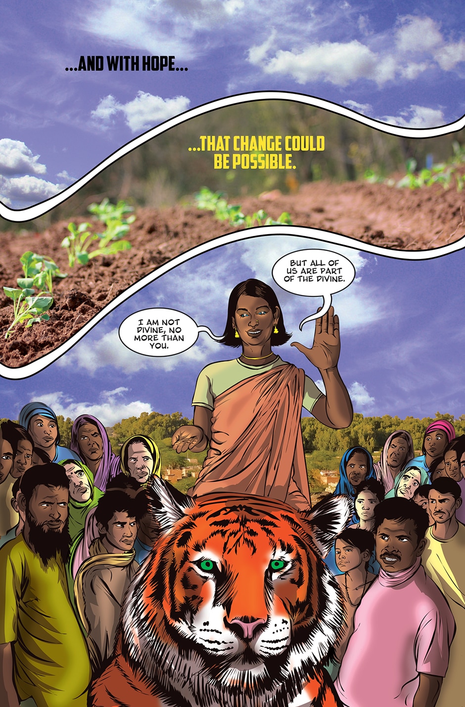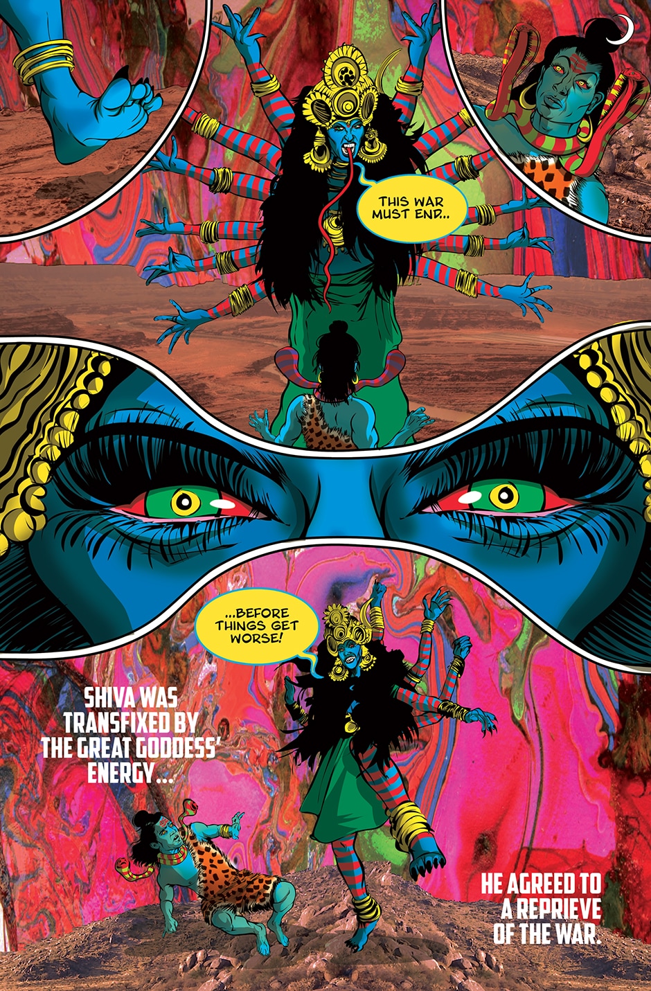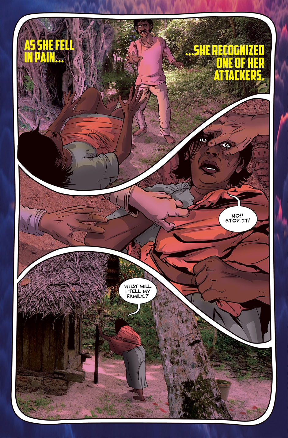 The storyline focuses on Priya, a human woman and ardent devotee of the Goddess Parvati who has experienced a brutal rape and the social stigma and isolation resulting from it. The Goddess Parvati is horrified to learn about the sexual violence that women on Earth face on a daily basis and is determined to change this disturbing reality. Inspired by the Goddess, Priya breaks her silence. She sings a message of women’s empowerment that enraptures thousands and moves them to take action against GBV around the world. This project highlights the threat of sexual harassment and violence that women face on a daily basis unless deeply rooted patriarchal norms are challenged.