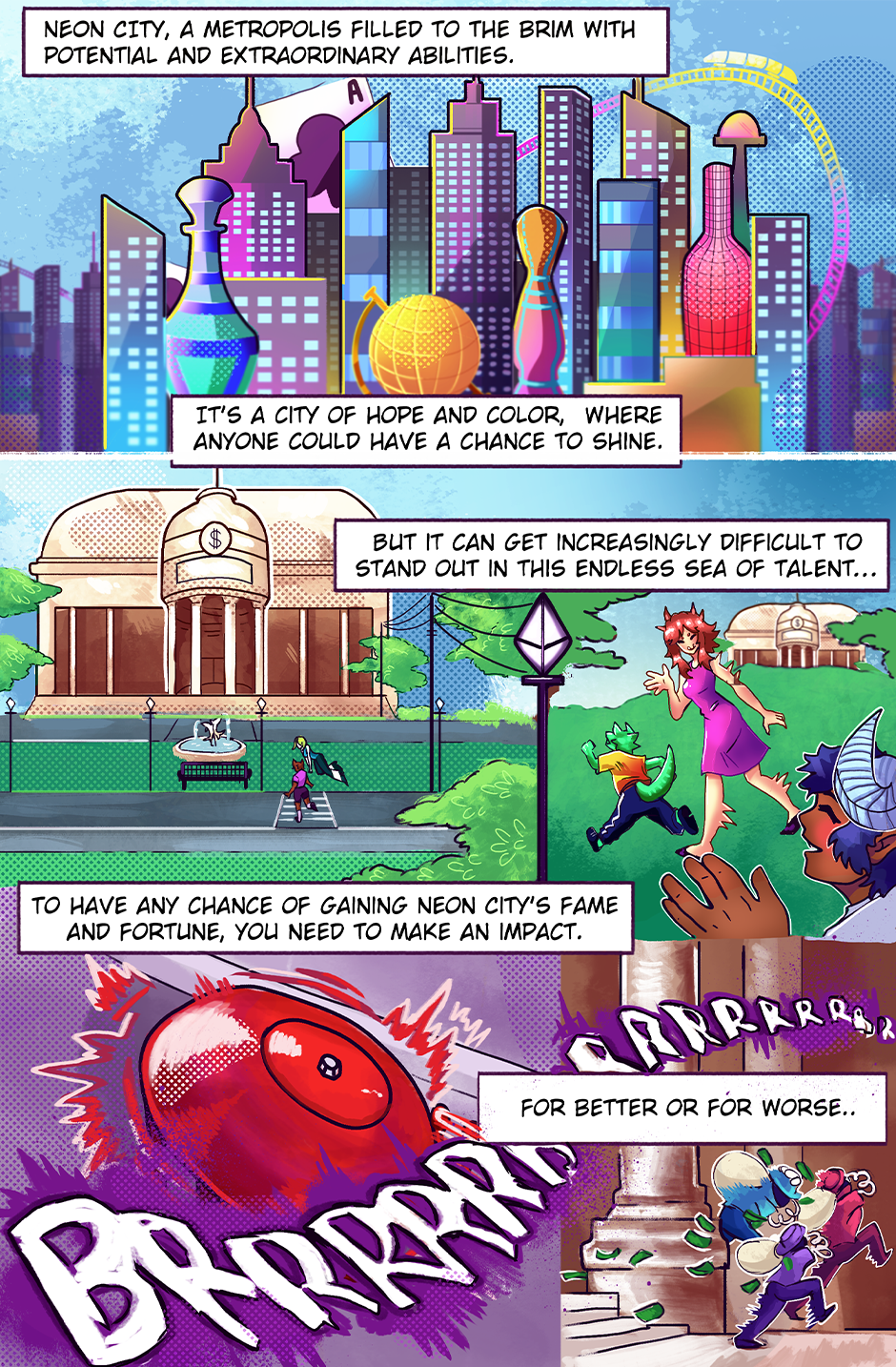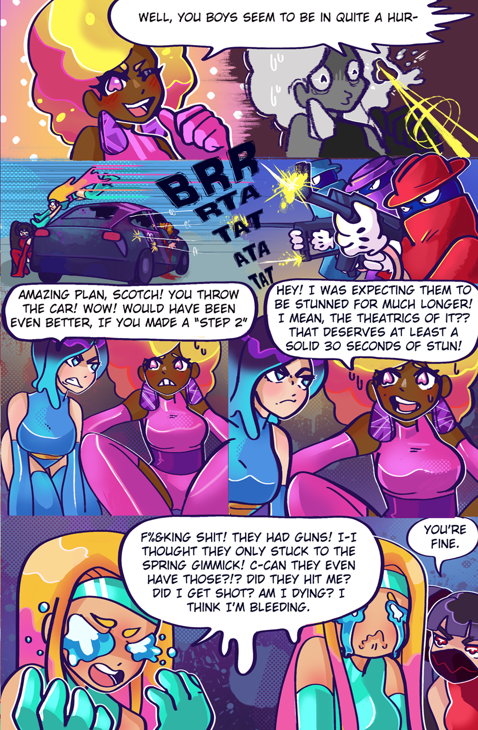 In a Hollywood-like world of superheroes, four girls try to become stars with the help of their manager and their weird and fantastical powers. Join SCOTCH, JELLO, COSMO, and HABU in their adventures to become the biggest superhero team in NEON CITY!!