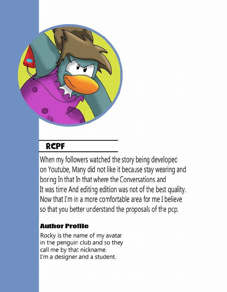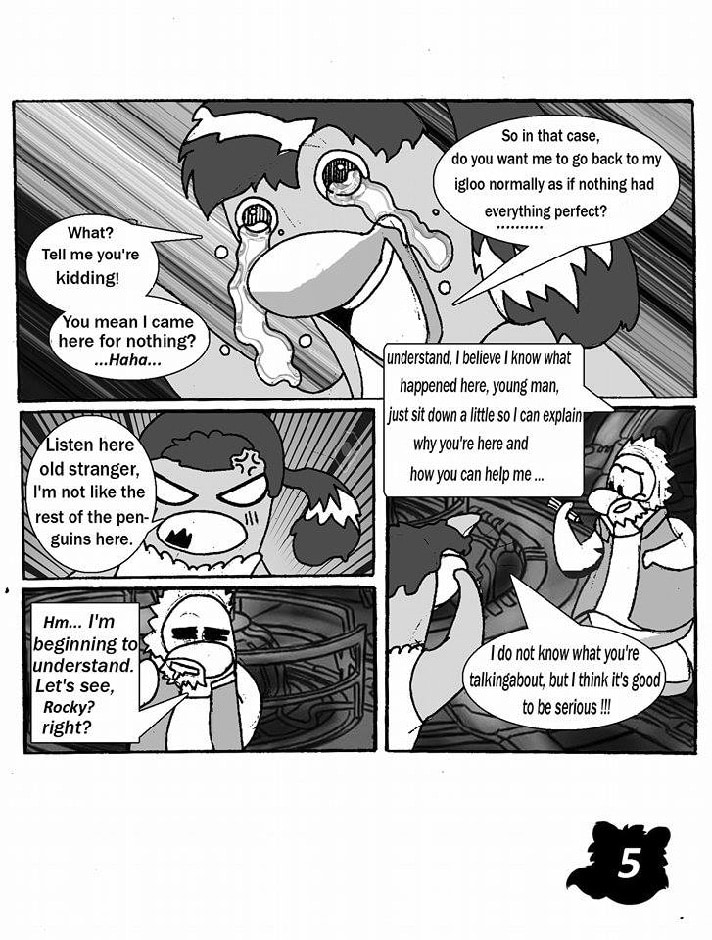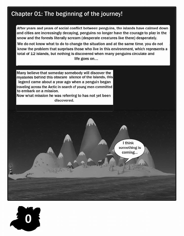 This story takes place in the Arctic islands at a time after wars. Roky is a penguin living in the South Village of Lotus Island and just like all of his generation do not understand why the coldness of the population. In an ordinary day Roky enters a new universe of creatures to which they live in a universe parallel to her and the one that will give her to him its first friend Pyccampor.