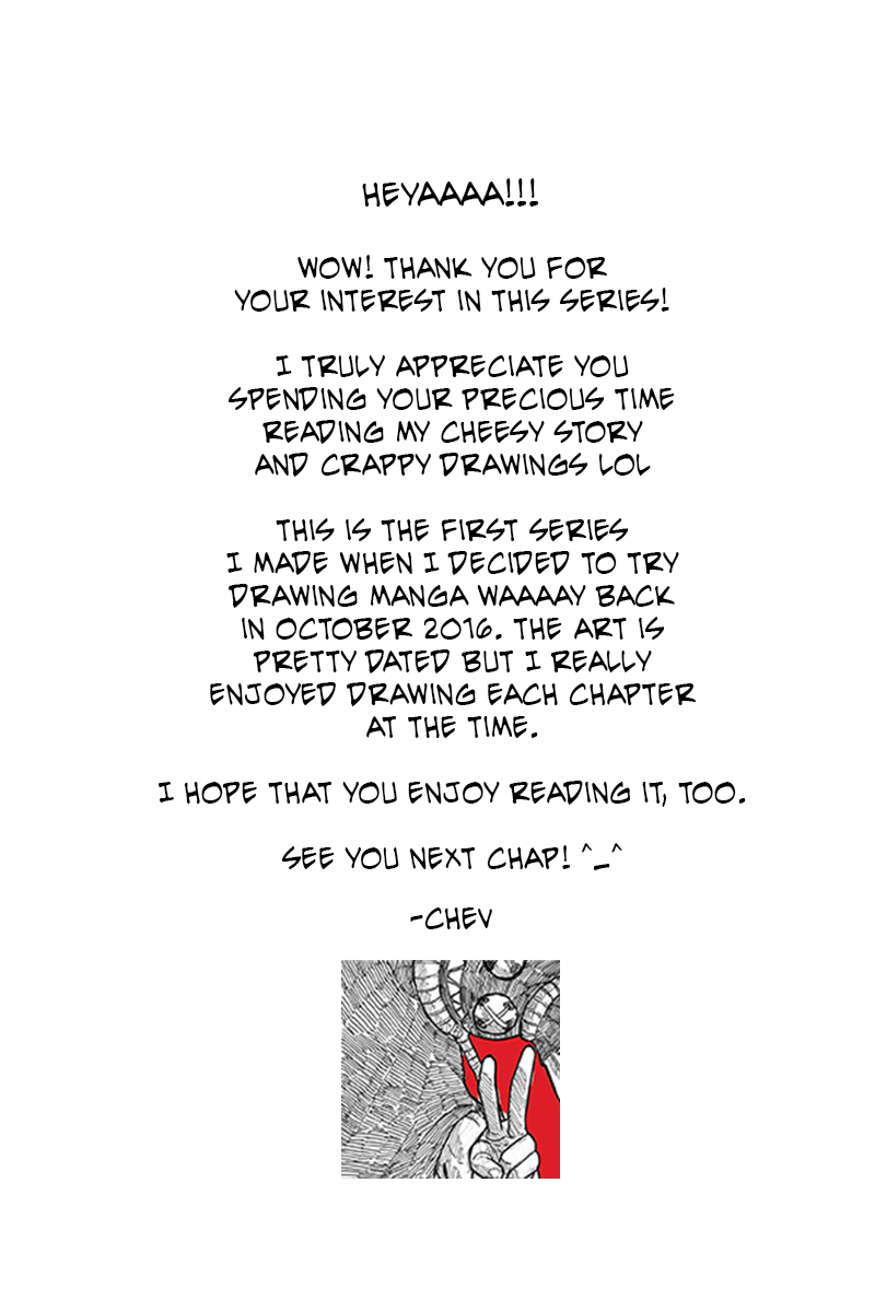 Hi! Thank you for reading my first comic book series~ I know the art is a bit rough and the dialogue are cheesy but I really enjoyed working on this and I hope you have a good time, too. Thank you so much! - Chev