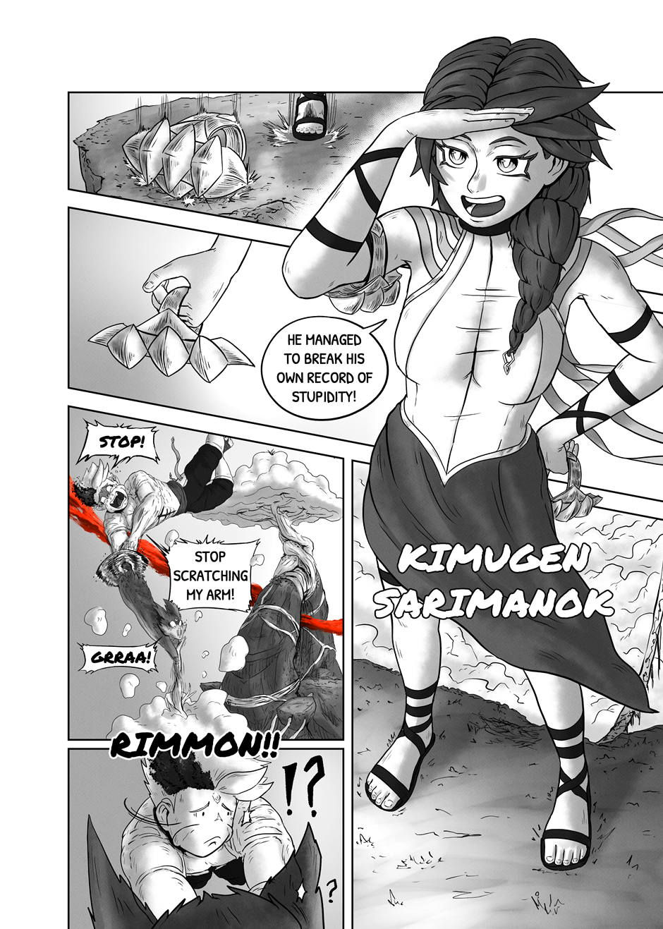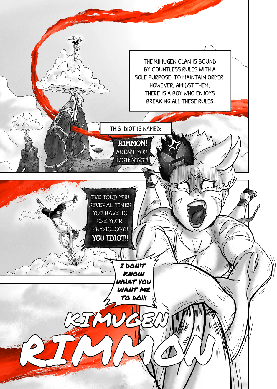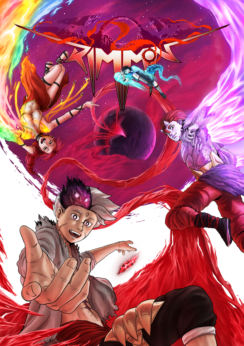 PT: A Manga do Rimmon serve como uma introdução ao nosso trabalho, permitindo que os leitores se familiarizem com ele. Esta empolgante manga acompanha a história dos jovens do Clã Kimugen, como Rimmon e Sari, cuja sociedade proíbe a utilização dos poderes provenientes de sua fisiologia. Apesar disso, Sari, companheira de Rimmon, a encoraja a explorar esses poderes. Isso leva Rimmon a enfrentar desafios, descobrir sua verdadeira identidade e desvendar o mistério do Trilho Vermelho, uma enigmática trilha que percorre todo o universo. Sua coragem a impulsiona a enfrentar perigos desconhecidos em uma jornada épica, com o destino do universo dependendo de suas descobertas. Esperamos que apreciem!