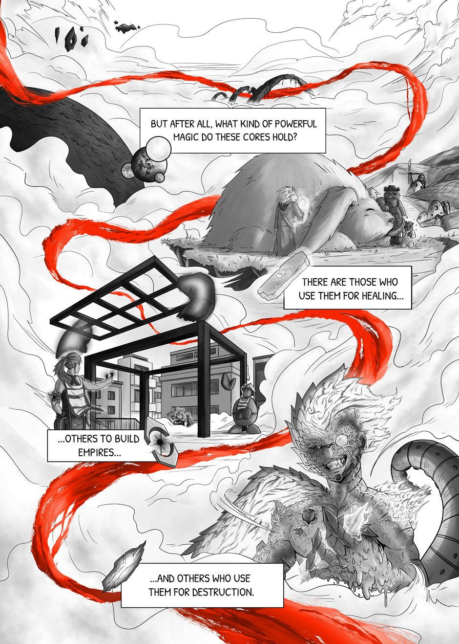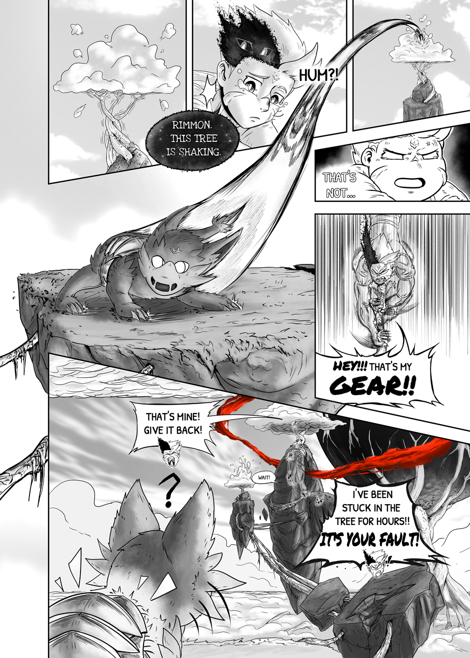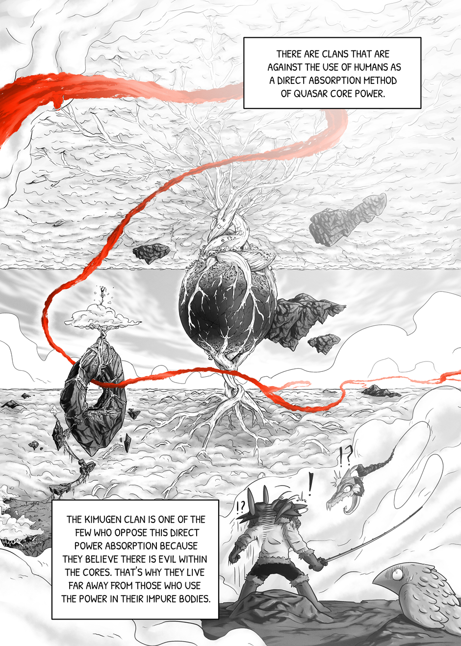 PT: A Manga do Rimmon serve como uma introdução ao nosso trabalho, permitindo que os leitores se familiarizem com ele. Esta empolgante manga acompanha a história dos jovens do Clã Kimugen, como Rimmon e Sari, cuja sociedade proíbe a utilização dos poderes provenientes de sua fisiologia. Apesar disso, Sari, companheira de Rimmon, a encoraja a explorar esses poderes. Isso leva Rimmon a enfrentar desafios, descobrir sua verdadeira identidade e desvendar o mistério do Trilho Vermelho, uma enigmática trilha que percorre todo o universo. Sua coragem a impulsiona a enfrentar perigos desconhecidos em uma jornada épica, com o destino do universo dependendo de suas descobertas. Esperamos que apreciem!