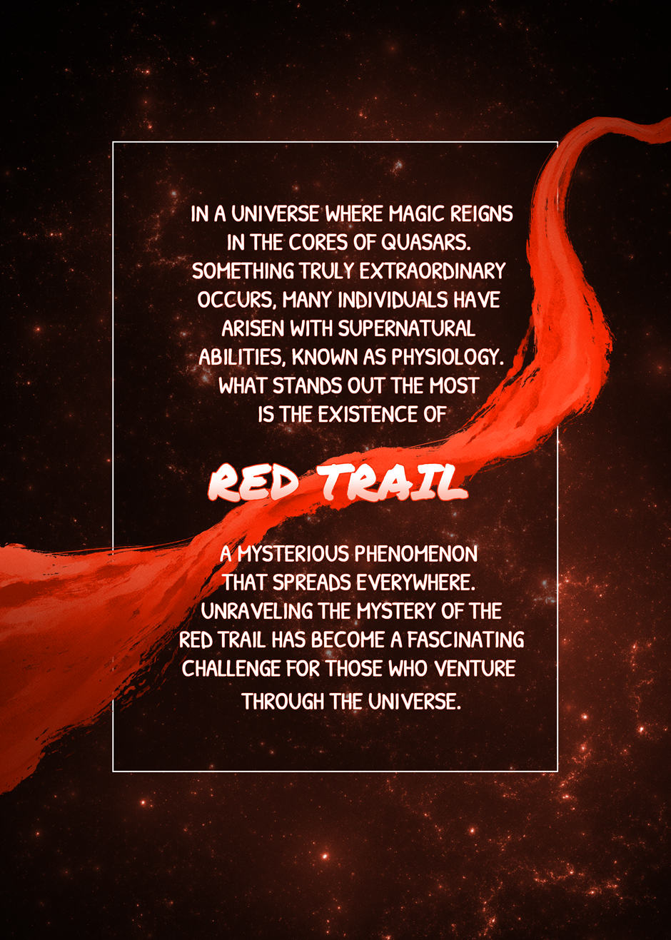 The Manga of Rimmon serves as an introduction to our work, allowing readers to become familiar with it. This exciting manga follows the story of the young members of the Kimugen Clan, such as Rimmon and Sari, whose society prohibits the use of powers derived from their physiology. Nevertheless, Sari, Rimmon's companion, encourages her to explore these powers. This leads Rimmon to face challenges, discover her true identity, and unravel the mystery of the Red Trail, an enigmatic path that spans the entire universe. Her courage drives her to confront unknown dangers on an epic journey, with the fate of the universe depending on her discoveries. We hope you enjoy it!