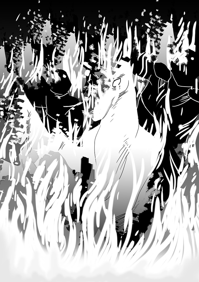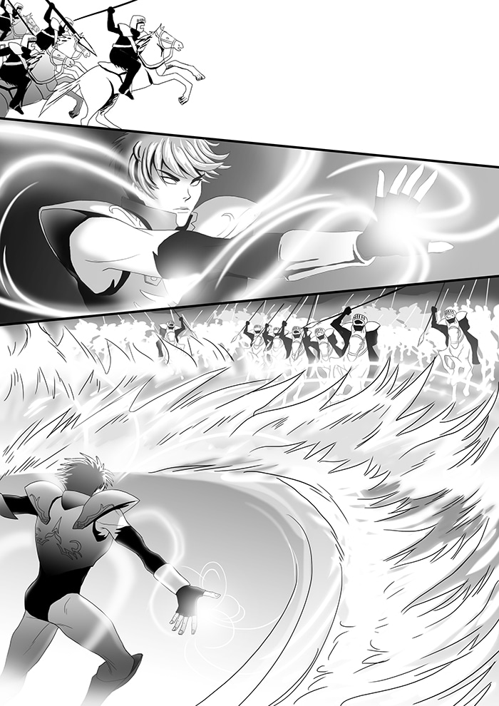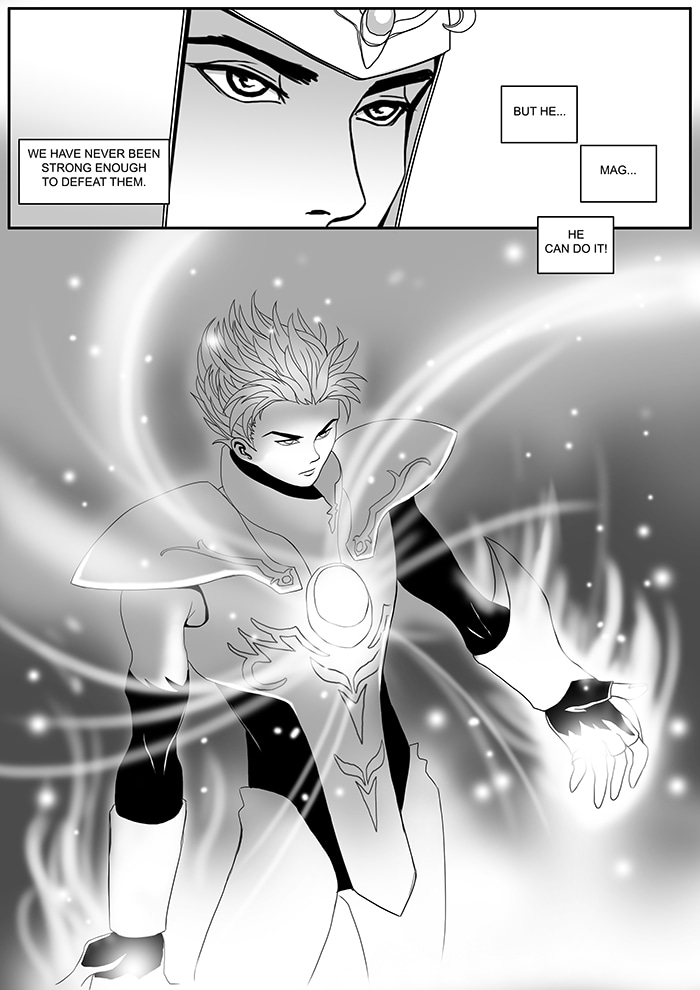 He was hired as a mercenary to serve the kingdom of Astarieth. Among the soldiers of the kingdom is Sir Greyl, who seeing the extraordinary strenght of Mag exercised in a battle, is fascinated by him, while Mag seems secretly attracted to Sir Greyl...