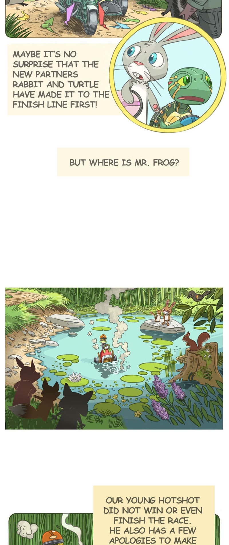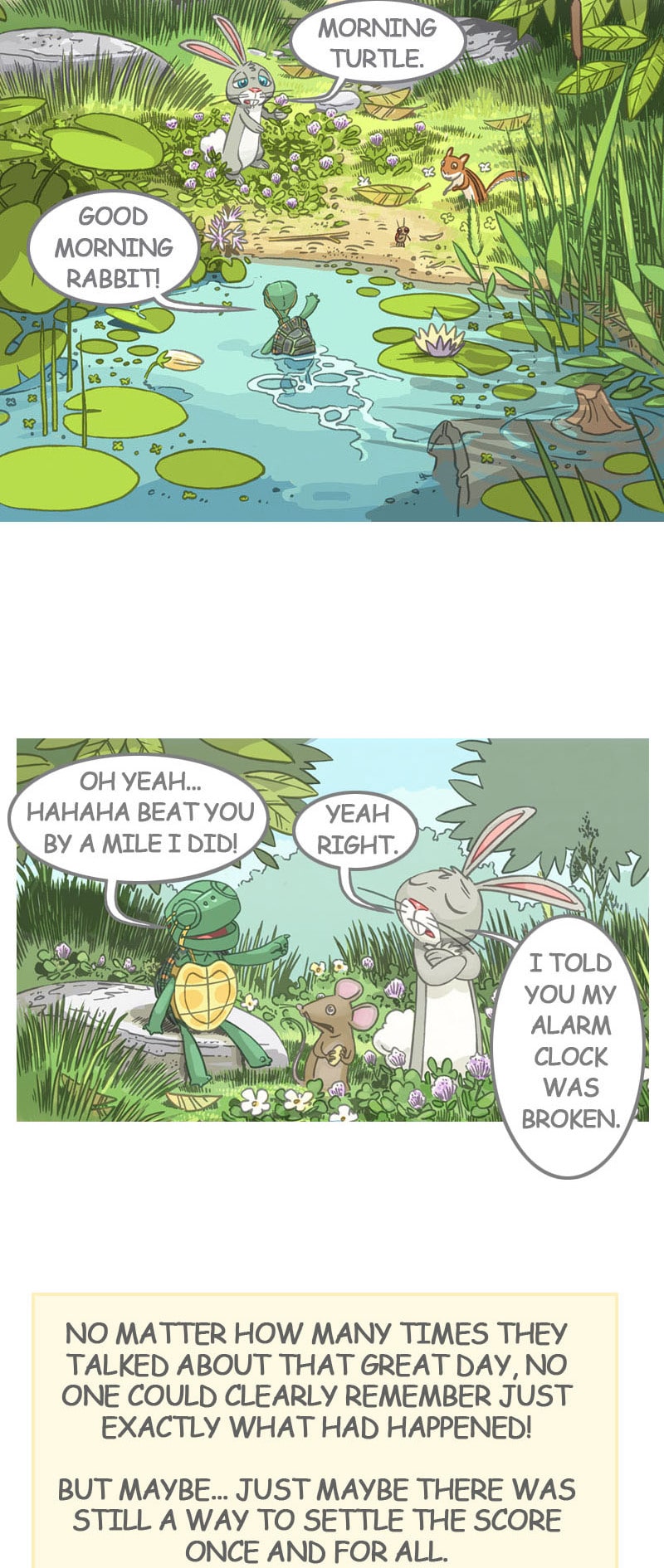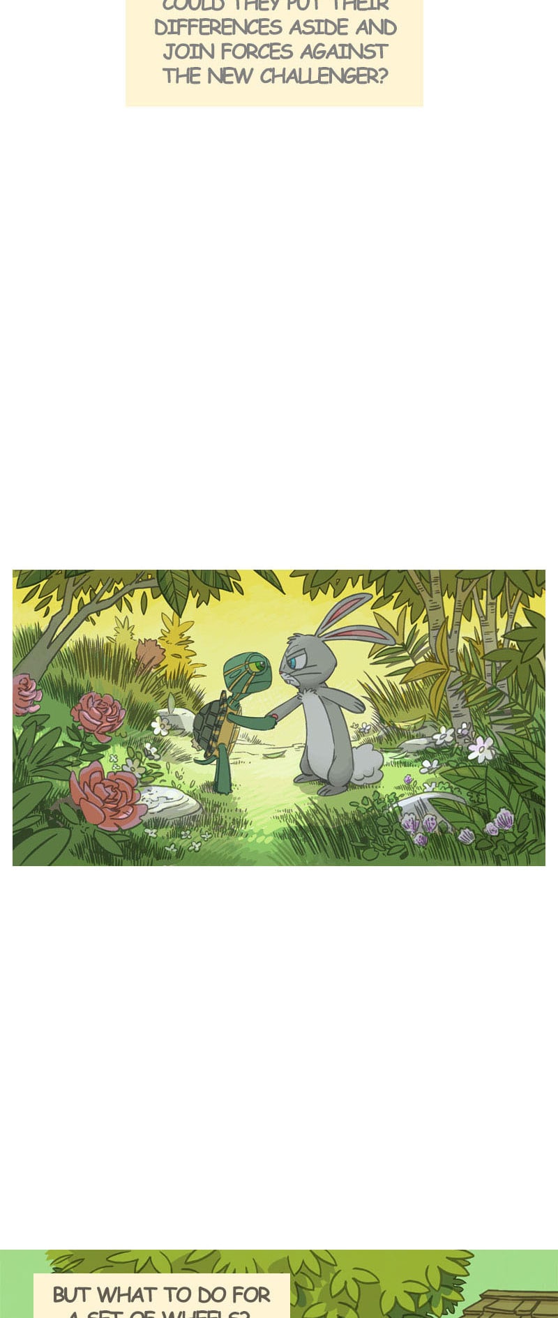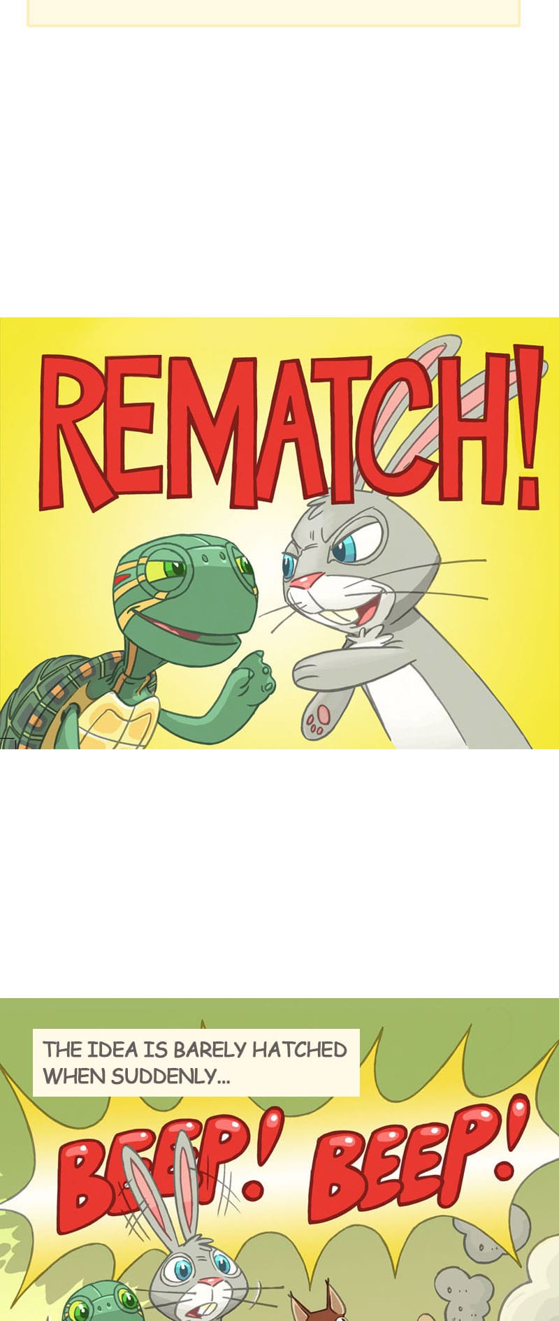 Do you remember the story of the speedy little rabbit that challenged a slow-moving turtle to a race? "Whatever happened to them?", you may wonder. In this sequel to that old classic, two old foes must join forces when a newcomer arrives. Who will win the rematch?