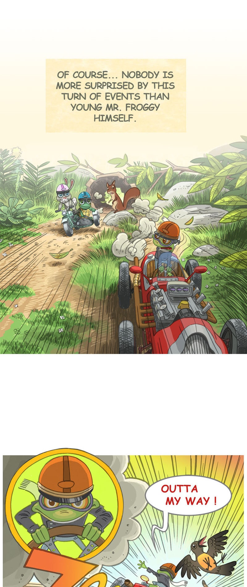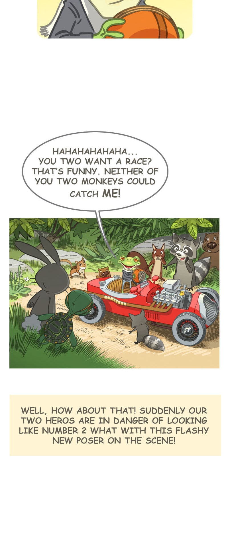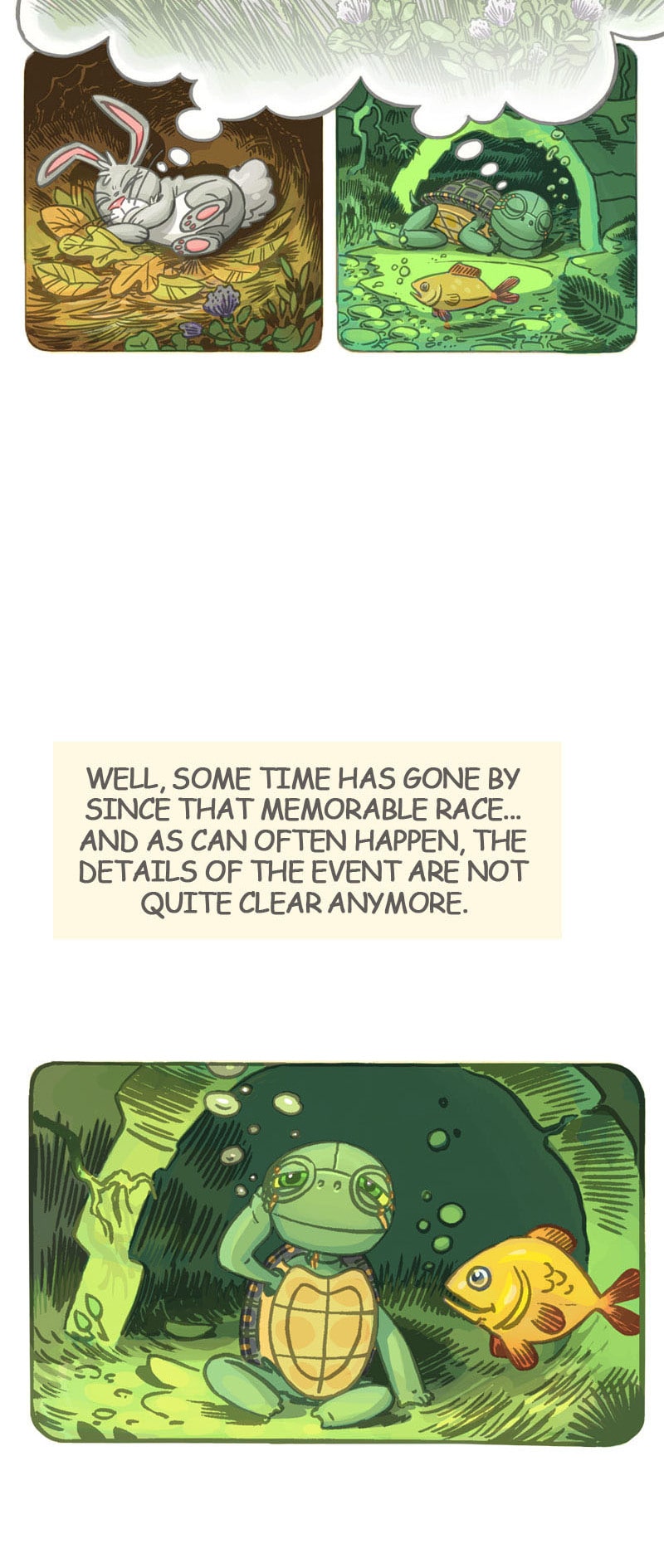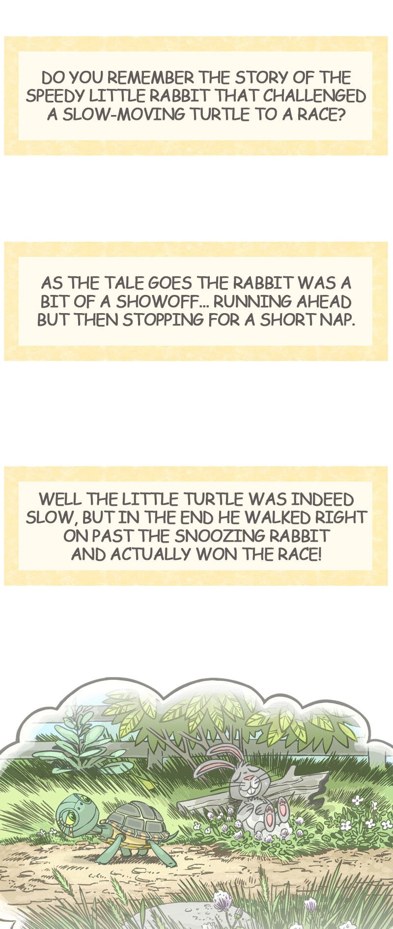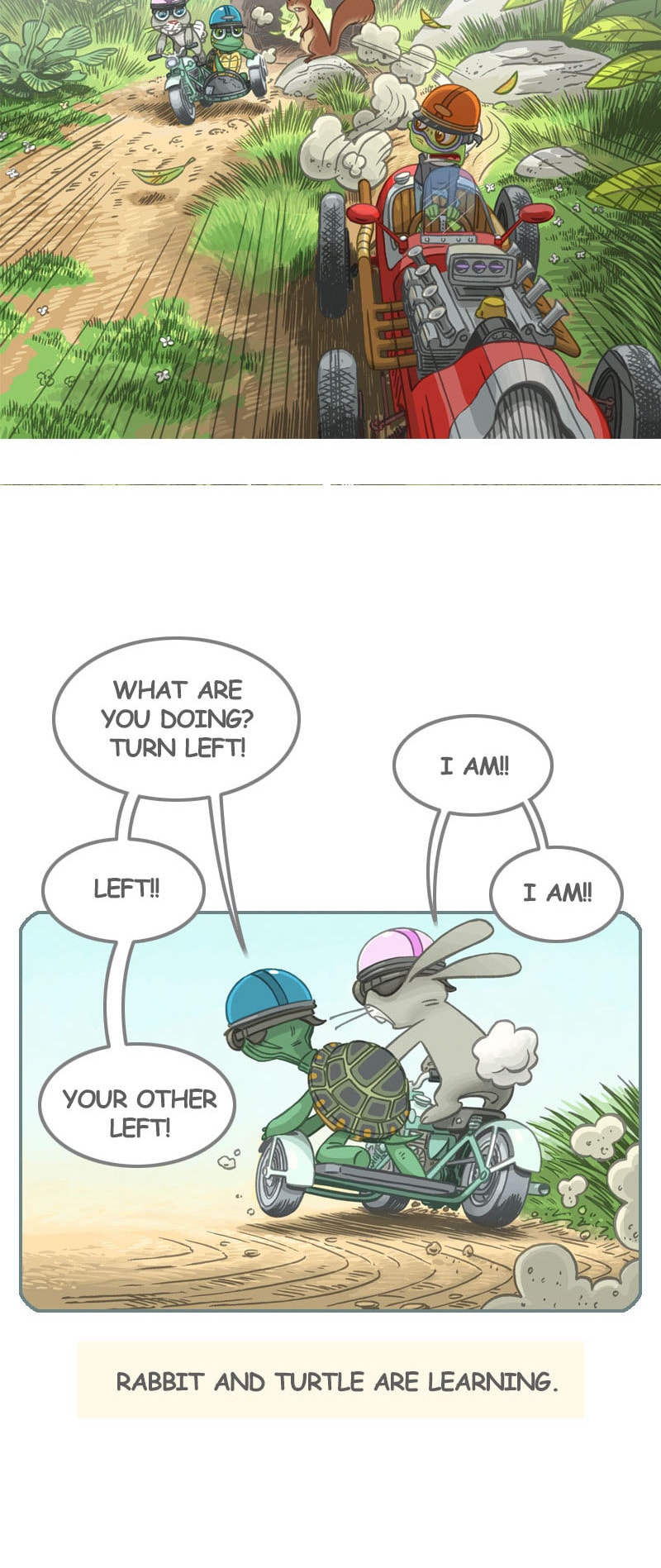 Do you remember the story of the speedy little rabbit that challenged a slow-moving turtle to a race? "Whatever happened to them?", you may wonder. In this sequel to that old classic, two old foes must join forces when a newcomer arrives. Who will win the rematch?