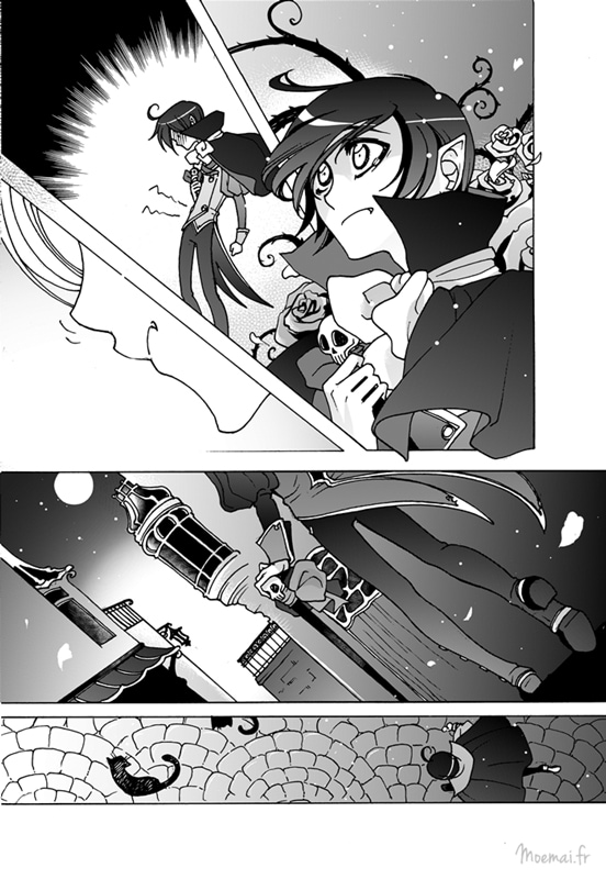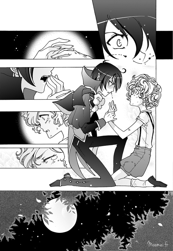 This one was available online on Zennon website for their Silent Comic contest ! I loved telling the story of this little vampire and his -maybe one day- calice here. It was a longer story at first, and then as I realised I would never draw it, I summarised their first encounter !